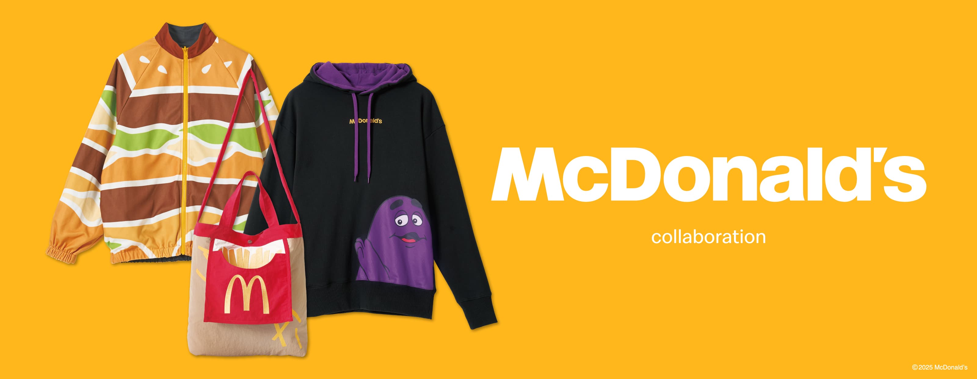 世界100以上の国と地域で展開するハンバーガー・レストラン・チェーン、マクドナルド。そんなマクドナルドのハンバーガーやポテトといった人気商品はもちろんのこと、歴代のロゴデザインなどがラインナップしたコラボレーションアイテムをぜひお楽しみください!