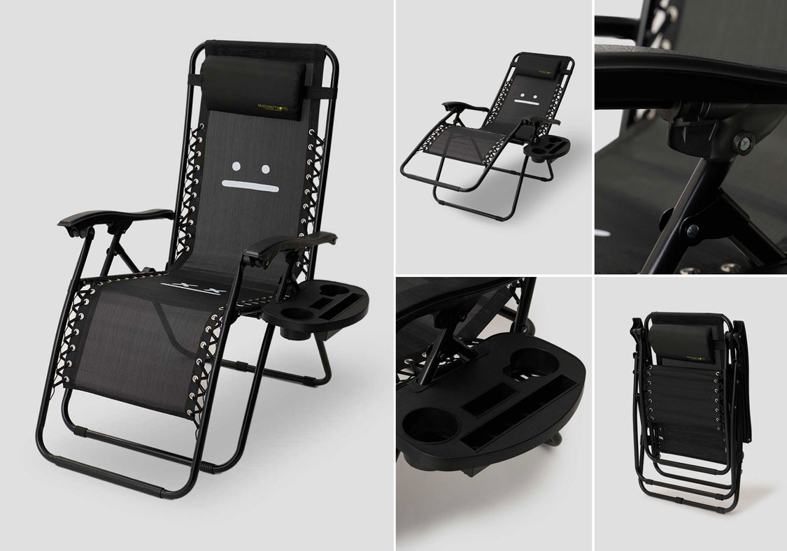 室内でも屋外でも、ゆったりと過ごせる折りたたみ式のリクライニングチェア。MUSTARD HOTELとのコラボレーション。無段階リクライニング機能で、細やかな角度調整が可能。お好みの姿勢でくつろげます。取り外し可能なドリンクホルダー付き。