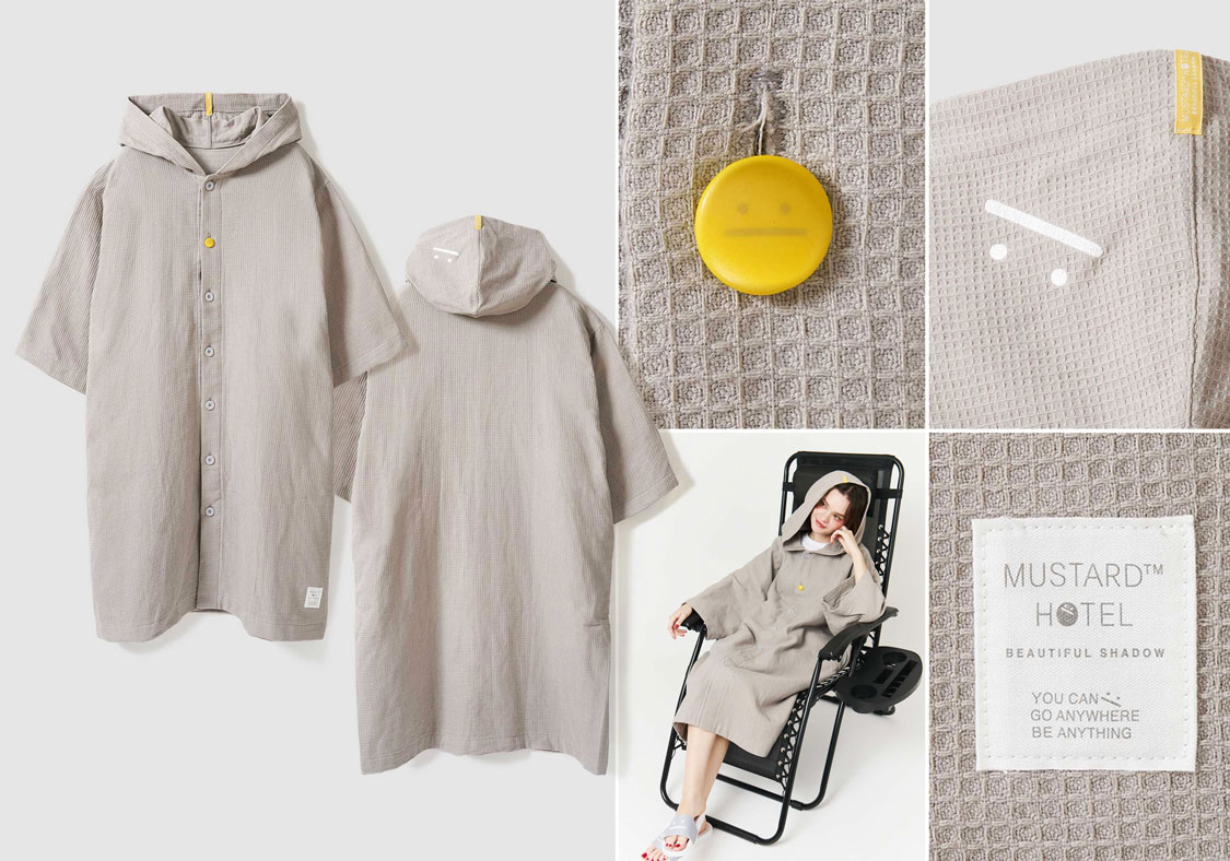 IKEUCHI ORGANICとMUSTARD HOTELとのトリプルコラボレーション。表面はワッフル、裏面はガーゼ素材の肌ざわり抜群なサウナポンチョ。吸水性、通気性に優れた素材は、サウナ後の外気浴時に体をやさしく包み込みます。プールや海、サーフィン後の着替え用ポンチョとしても◎ |