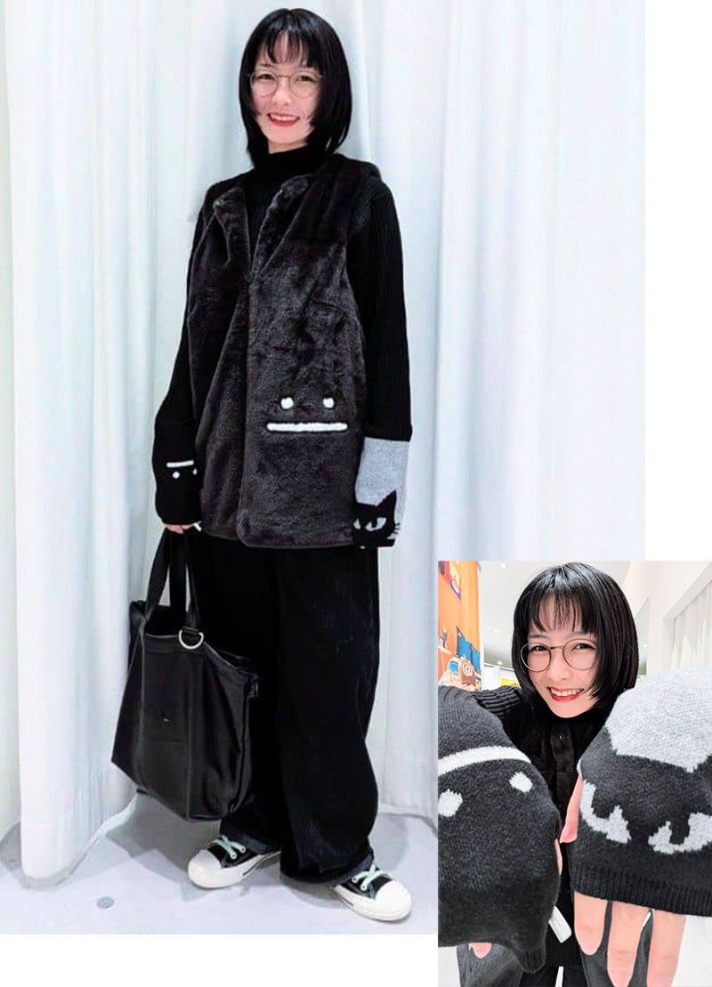 猫かぶりのスウェットはシャドーくん部分がジップ付きポケットになっていて、すぐ取り出したい小さいものが入れられて便利!!◎