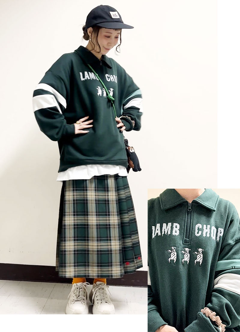 大好きなイカクとラムチョップを使ったコーディネートです☆グリーン×チェック柄で落ち着きのある雰囲気に仕上げました。