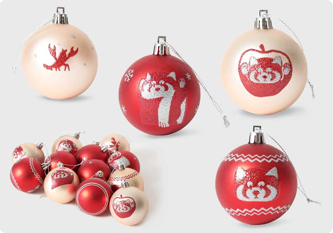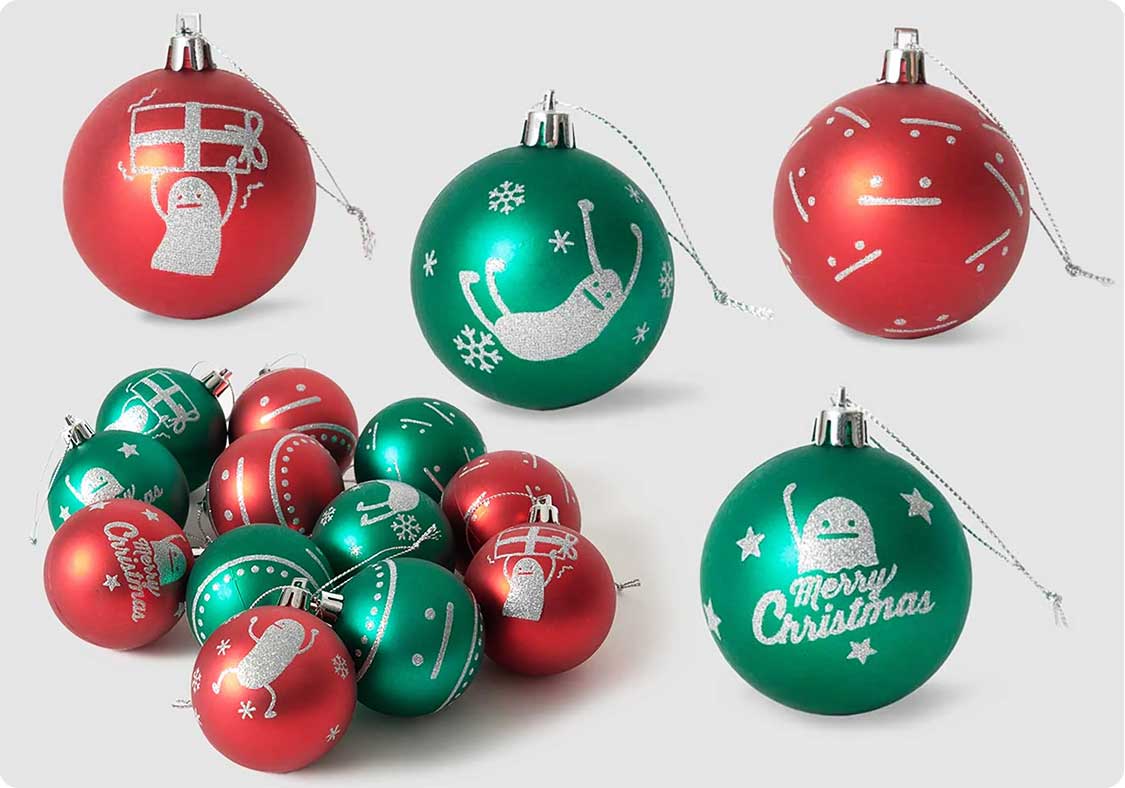 2色のボールオーナメント12個セット。きらきら輝くラメプリントがクリスマスらしさを演出します。ツリーに飾るのはもちろん、壁にかけても可愛いです。大きすぎず飾りやすい直径6cm。