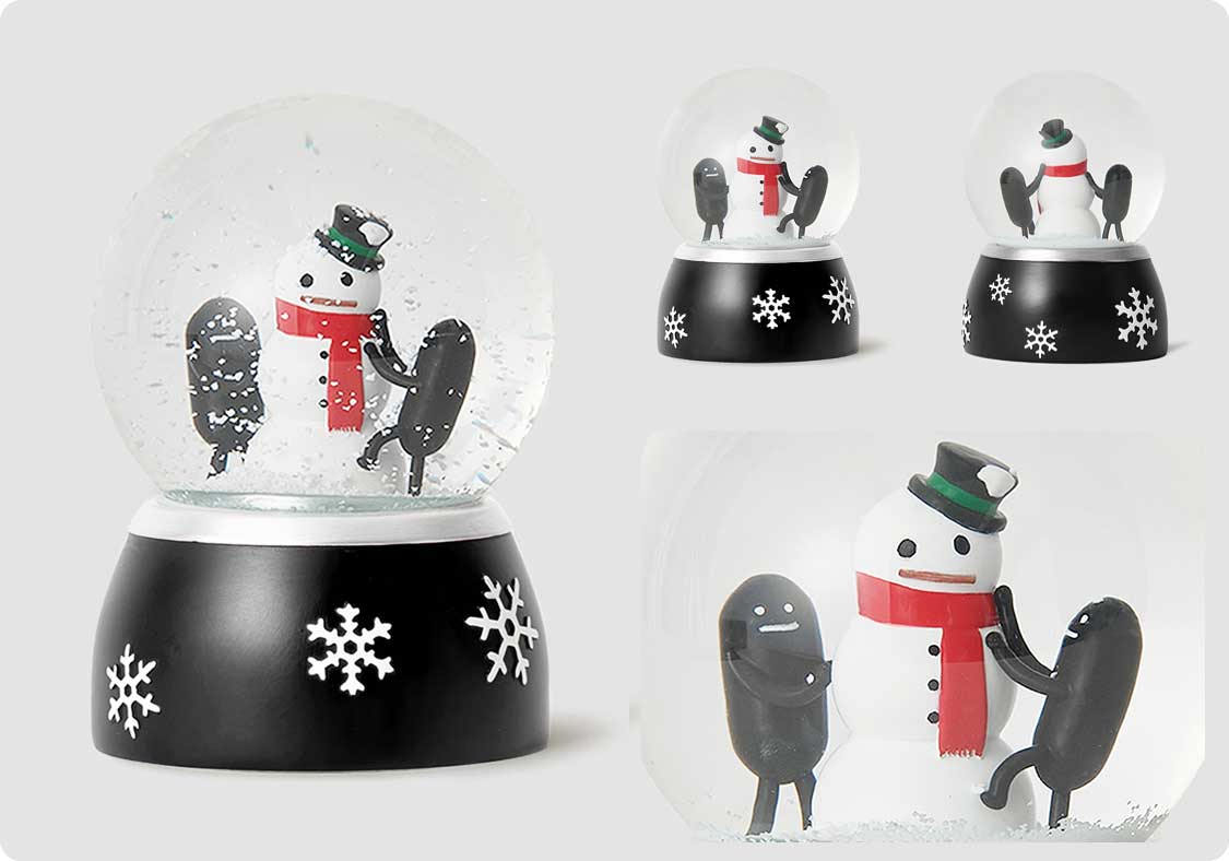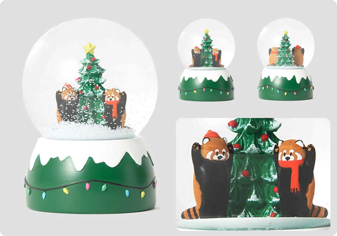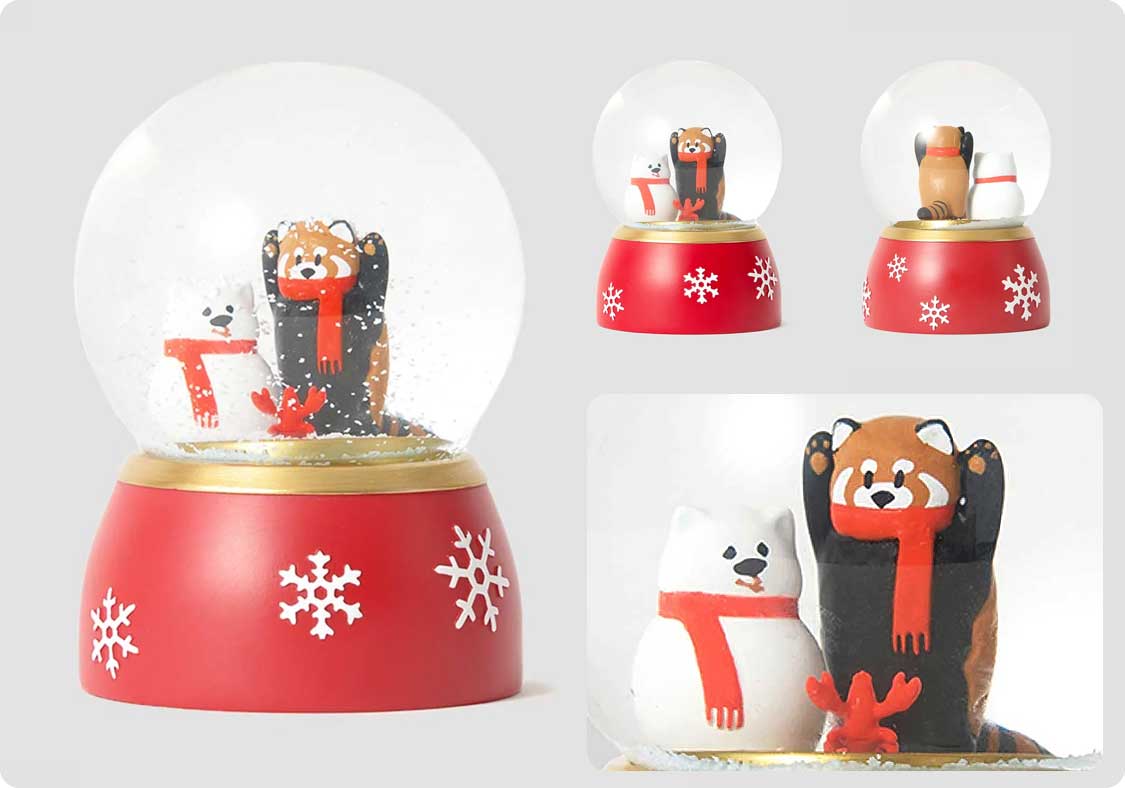 クリスマスデザインのスノードーム。存在感のある直径10cmの大きめサイズ。ドーム内に舞う雪が、クリスマスらしさを演出します♪