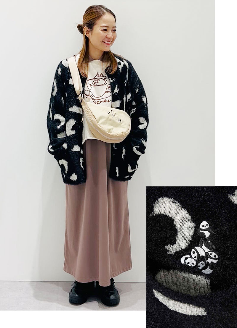 もちもち手触りのゆったりニットカーディガンでお出かけコーデ〜♪