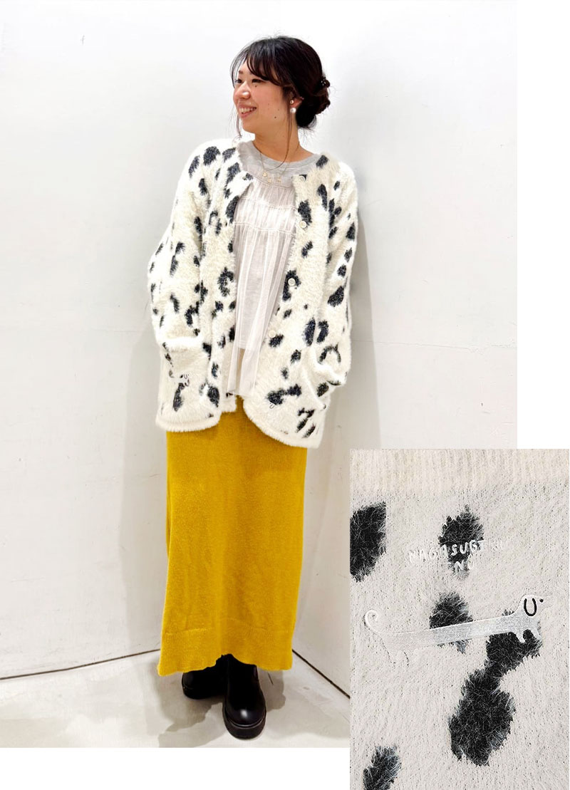 ダルメシアン柄風のふわもこニット。 一目惚れするくらい可愛くて、暖かくて、1枚で主役のおすすめアイテムです^^♪
