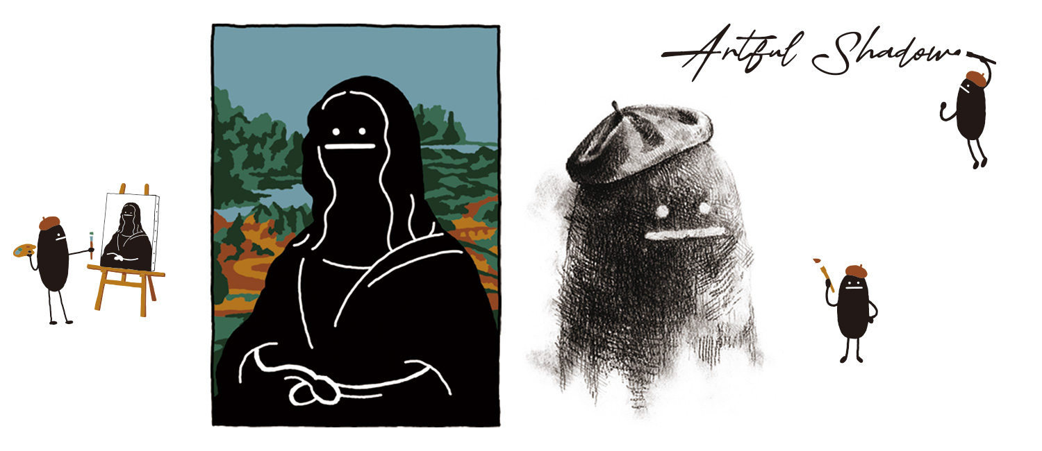 ビューティフルシャドーが名画の世界を旅するグラフィックシリーズ。アーティスティックな雰囲気とユーモアが混ざり合うデザインに仕上げました。 |