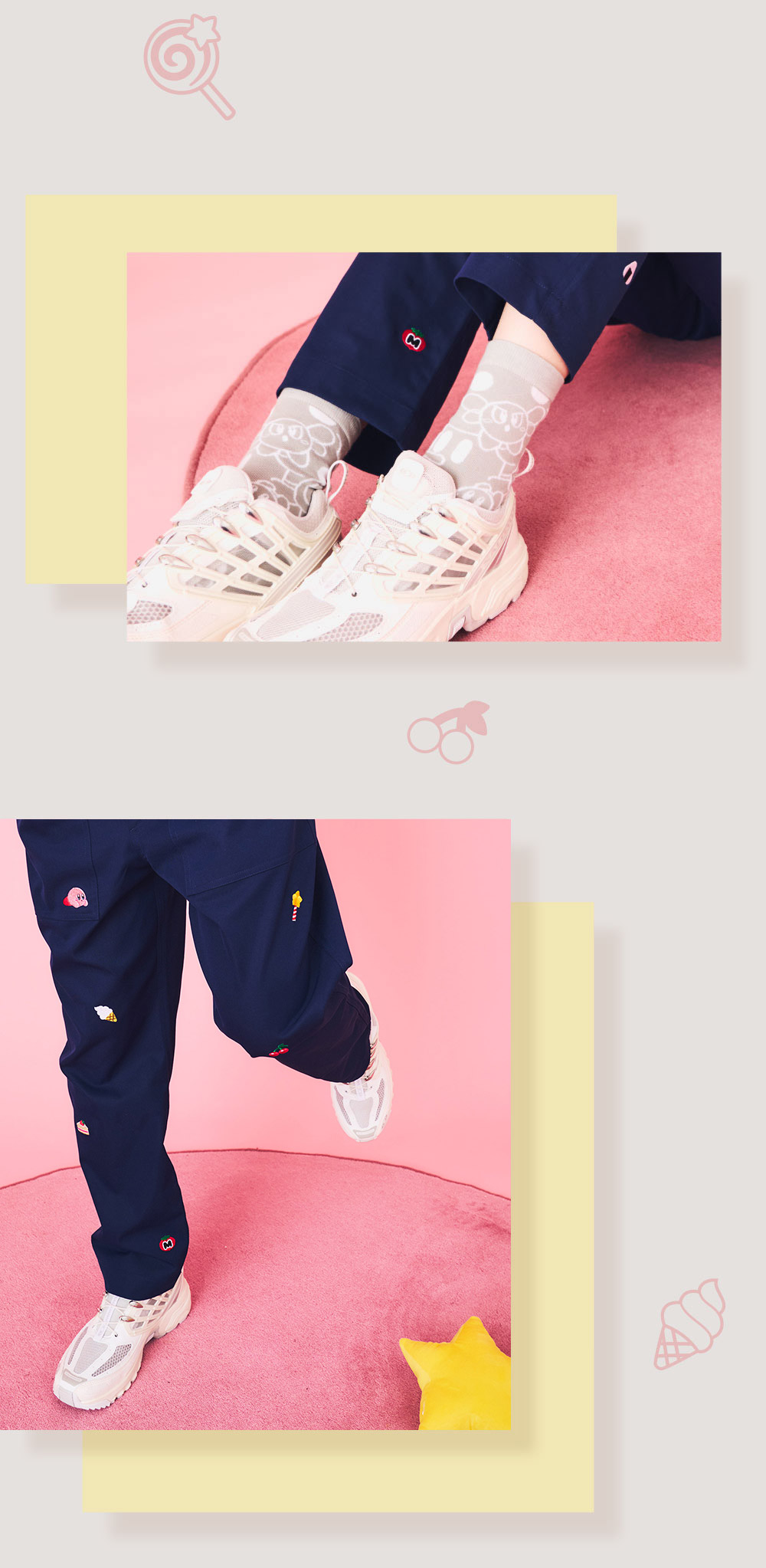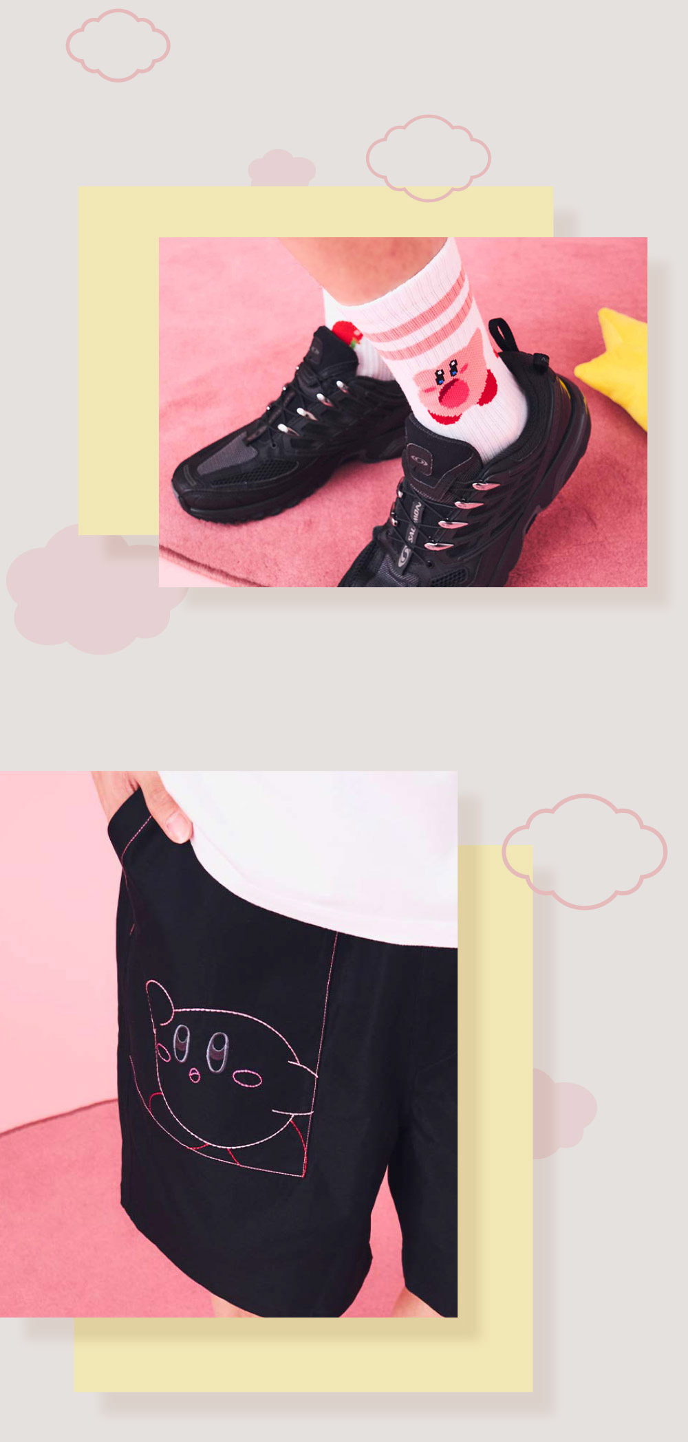 りんごとカービィ - long socks すいこみ ステッチ - big silhouette short pants ▶︎ all items