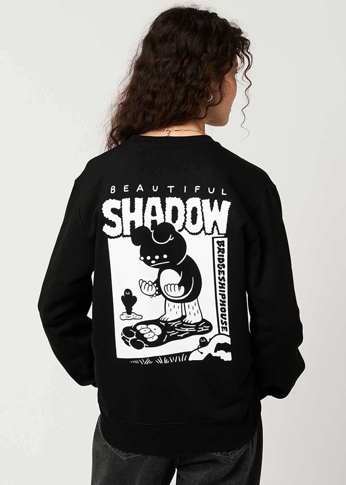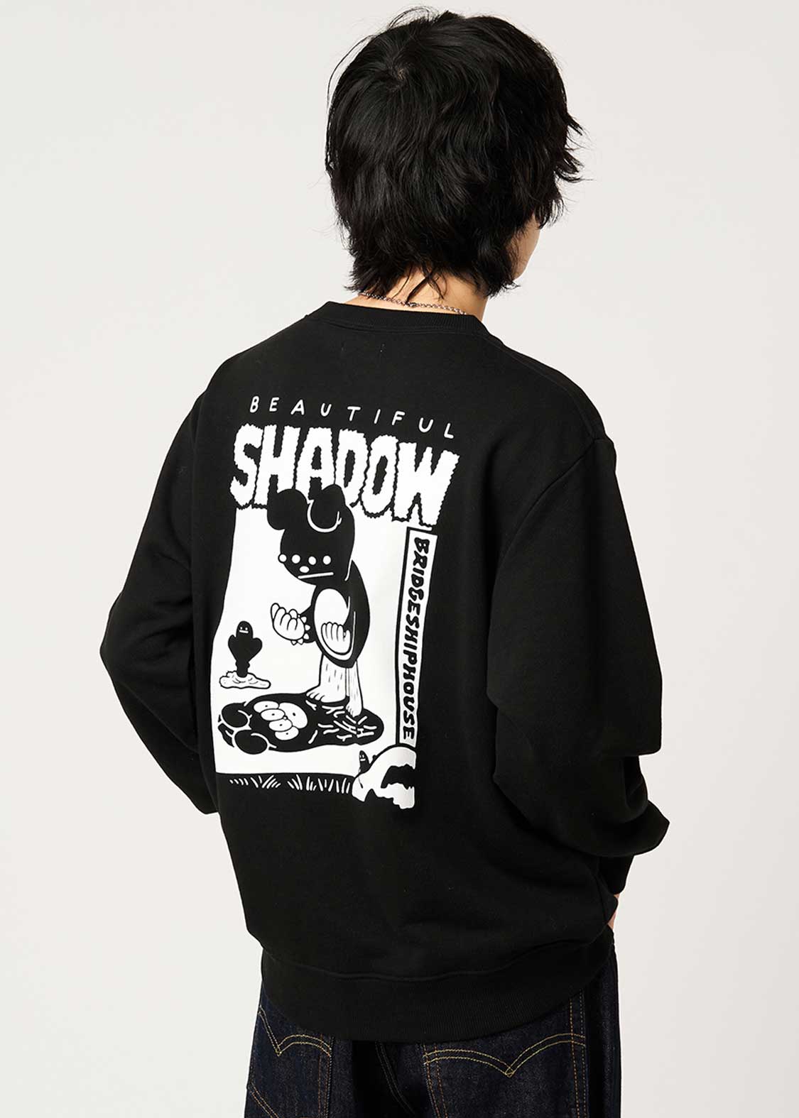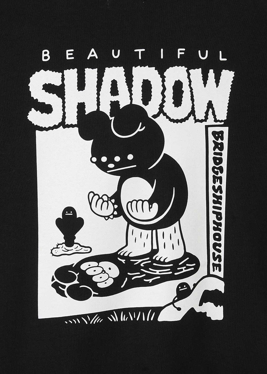BRIDGE SHIP HOUSEが描く特別なビューティフルシャドーのデザイン。フロントはビューティフルシャドーにイタズラされて顔が変わってしまったMatthewとMorris、バックはBRIDGE SHIP HOUSEのサインを描きました。ビューティフルシャドーは岩陰から満足げに見ています。
