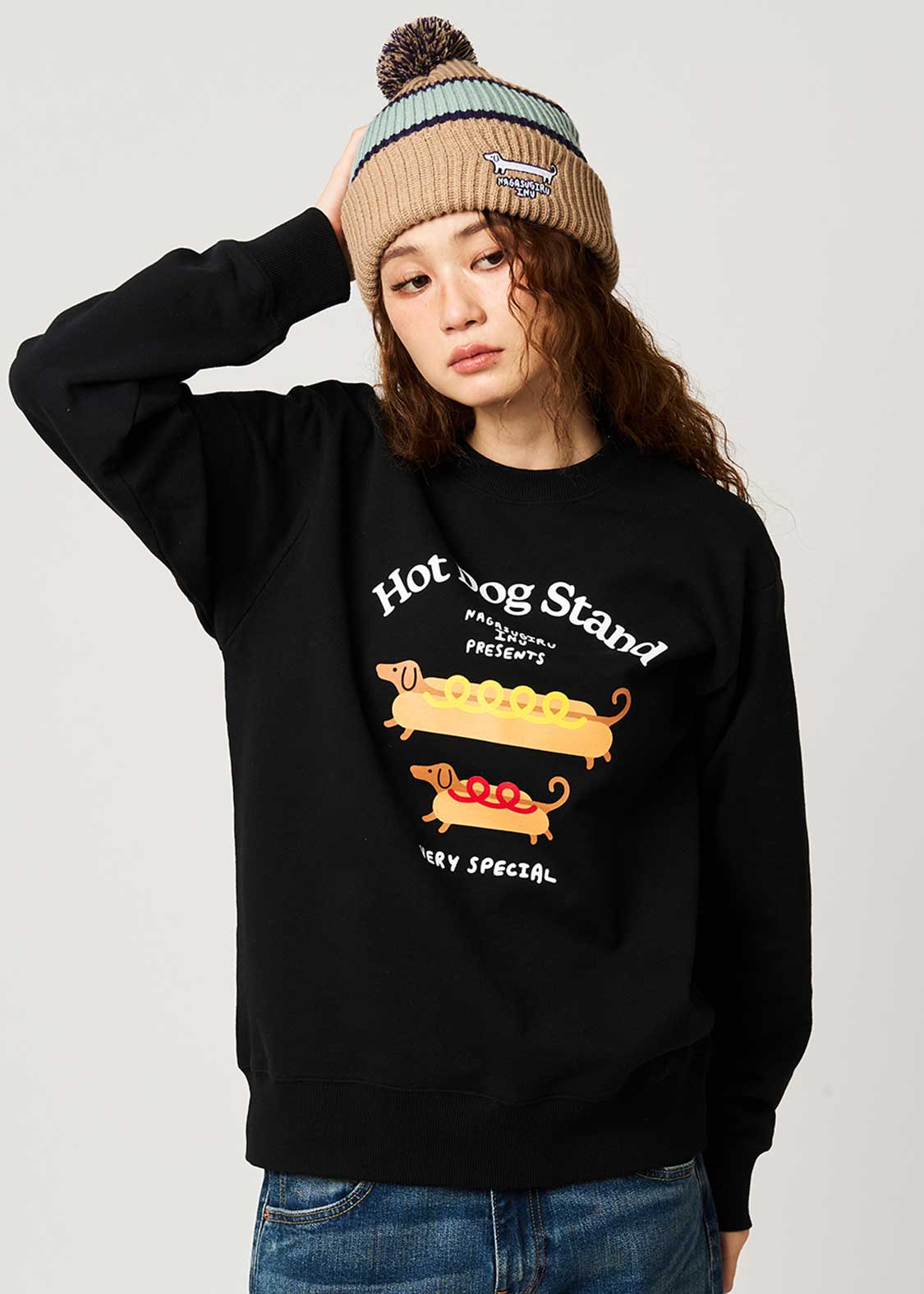 ナガスギルイヌがホットドッグとマッチング!かわいいアイコンとなったホットドッグスタンドのグッズをイメージしたグラフィックです。