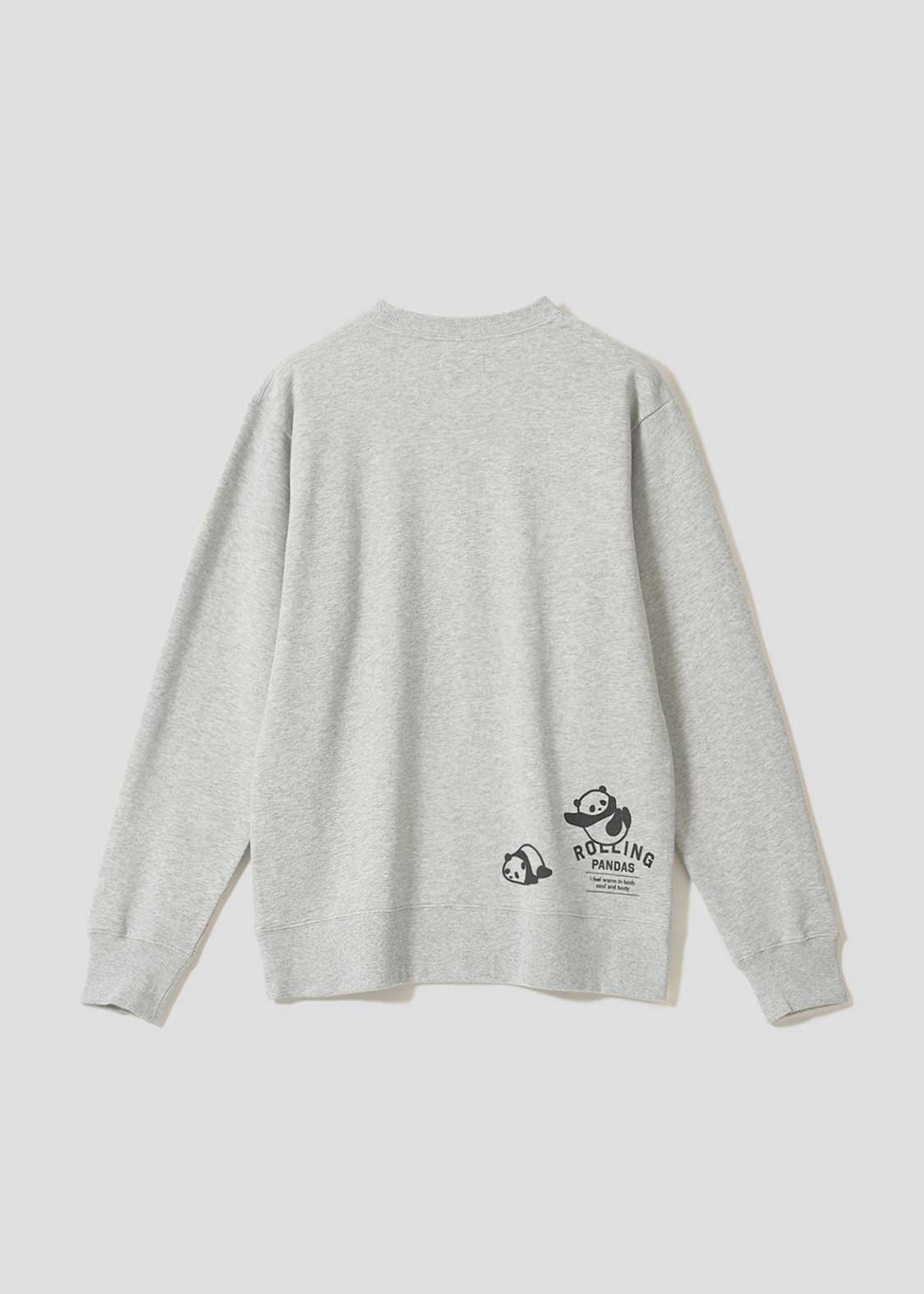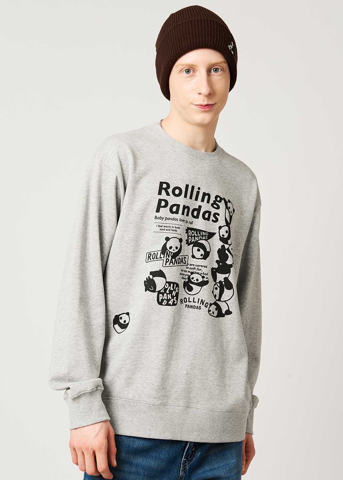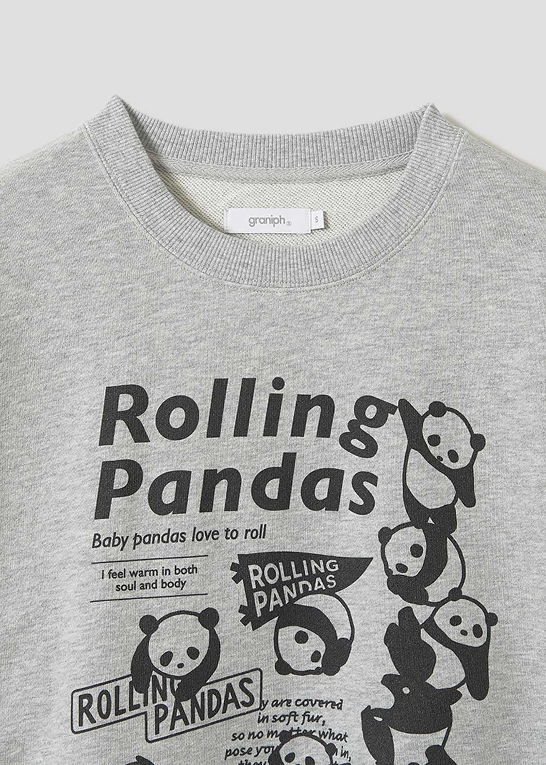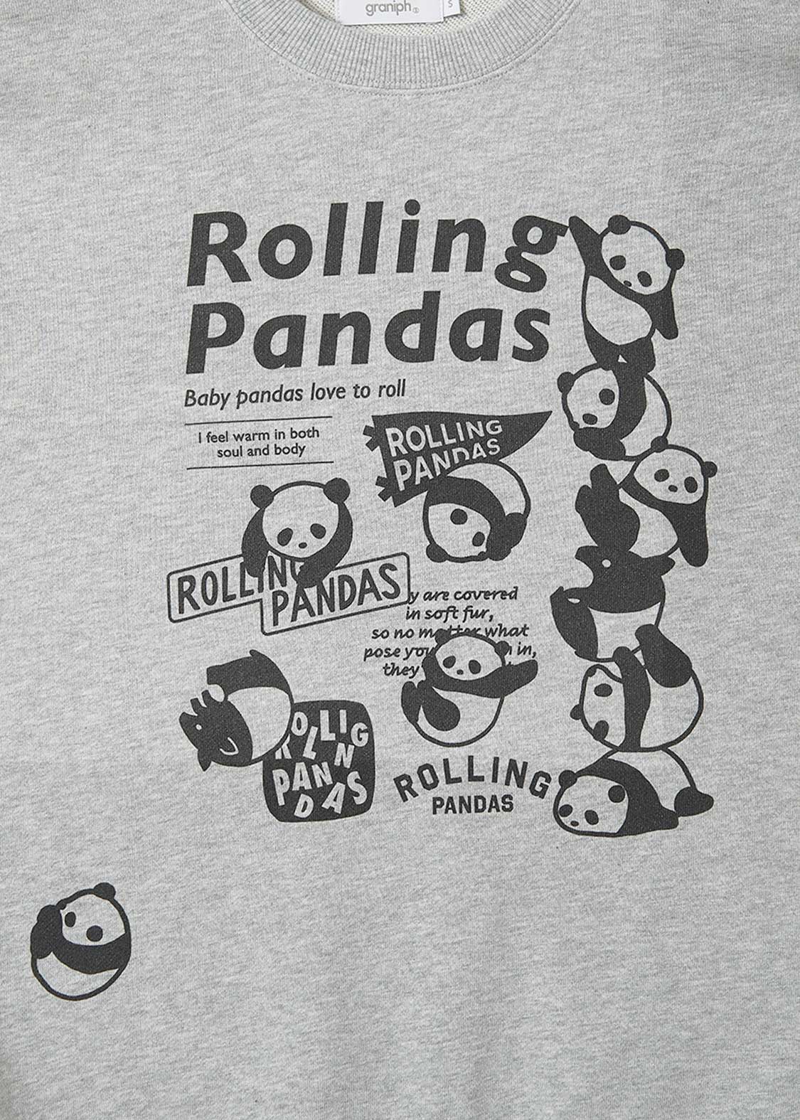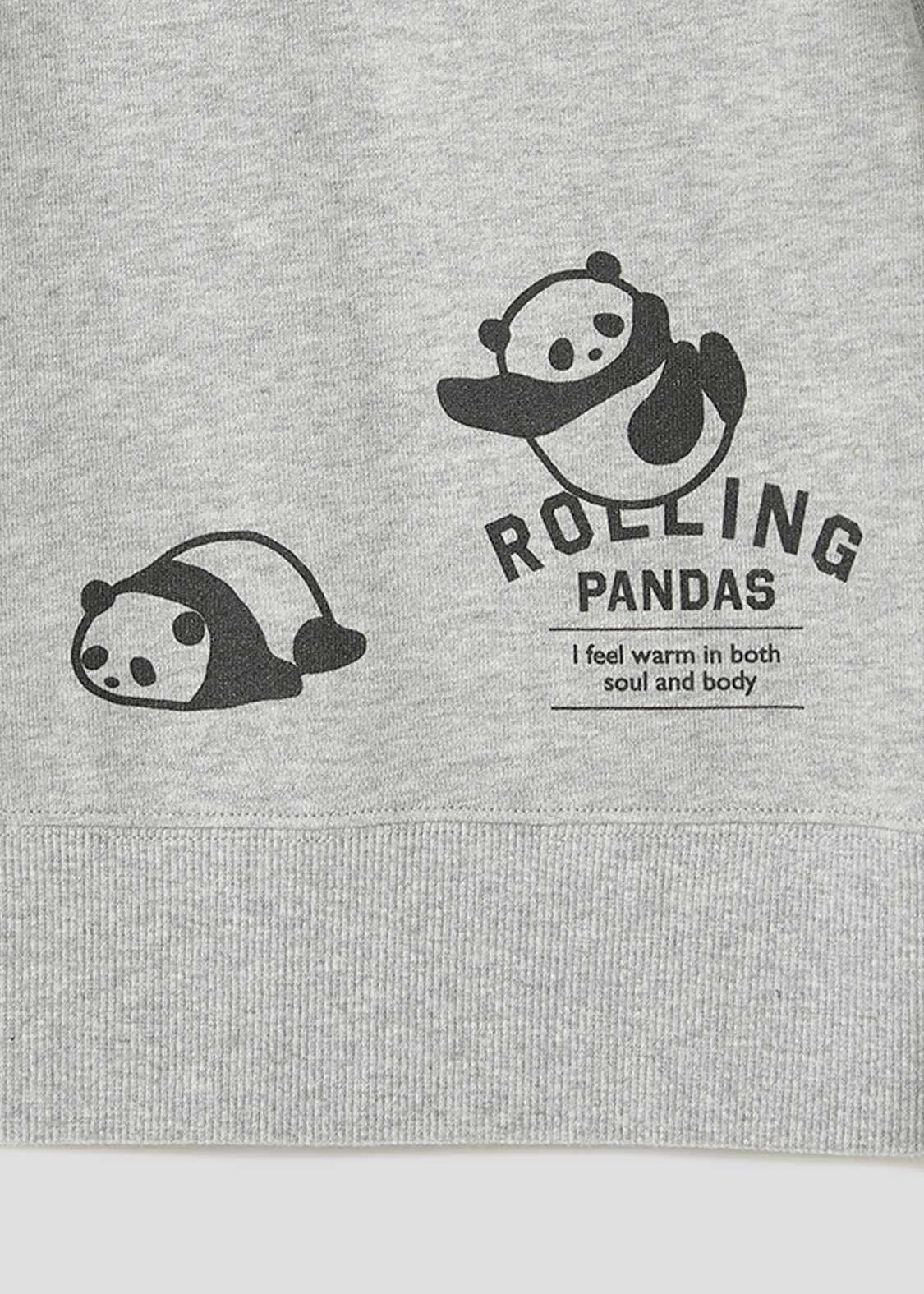 毬のように体を丸めた赤ちゃんパンダが、ころころと転がり落ちていく。その愛らしい姿に思わずほっこり気分になる、キュートなデザインです。