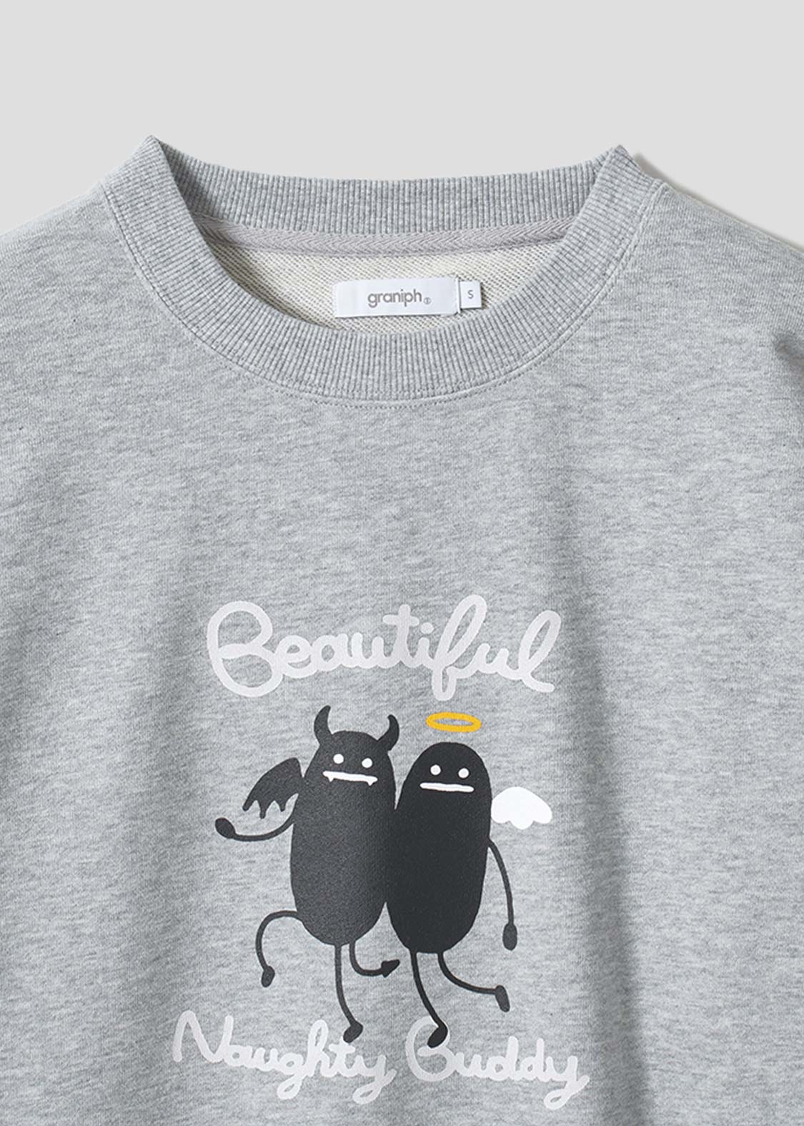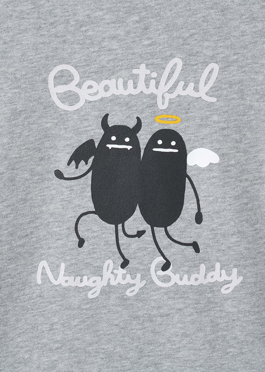 二本の角と輪っかをそれぞれ頭上に持つ、天使と悪魔のビューティフルシャドーが現れた!睨み合ったりする時もあるけれど、普段は仲良しな二人を描いたデザインです。
