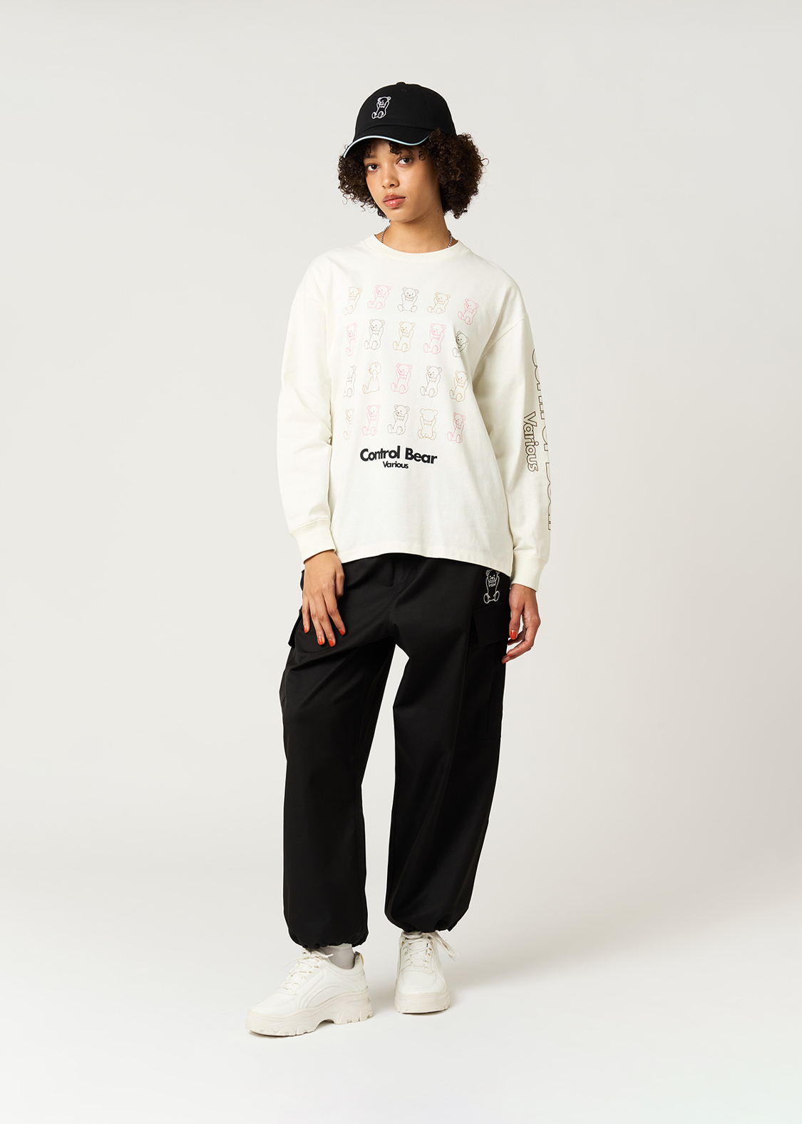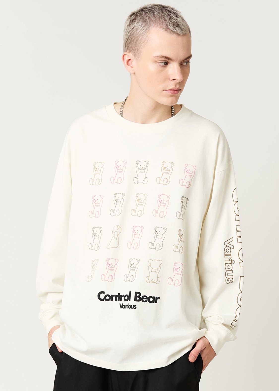 ポン!とばかりに頭をとるファニーなクマくん。ブラックなユーモアとキュートさが混じりあったインパクトのあるキャラクターです。