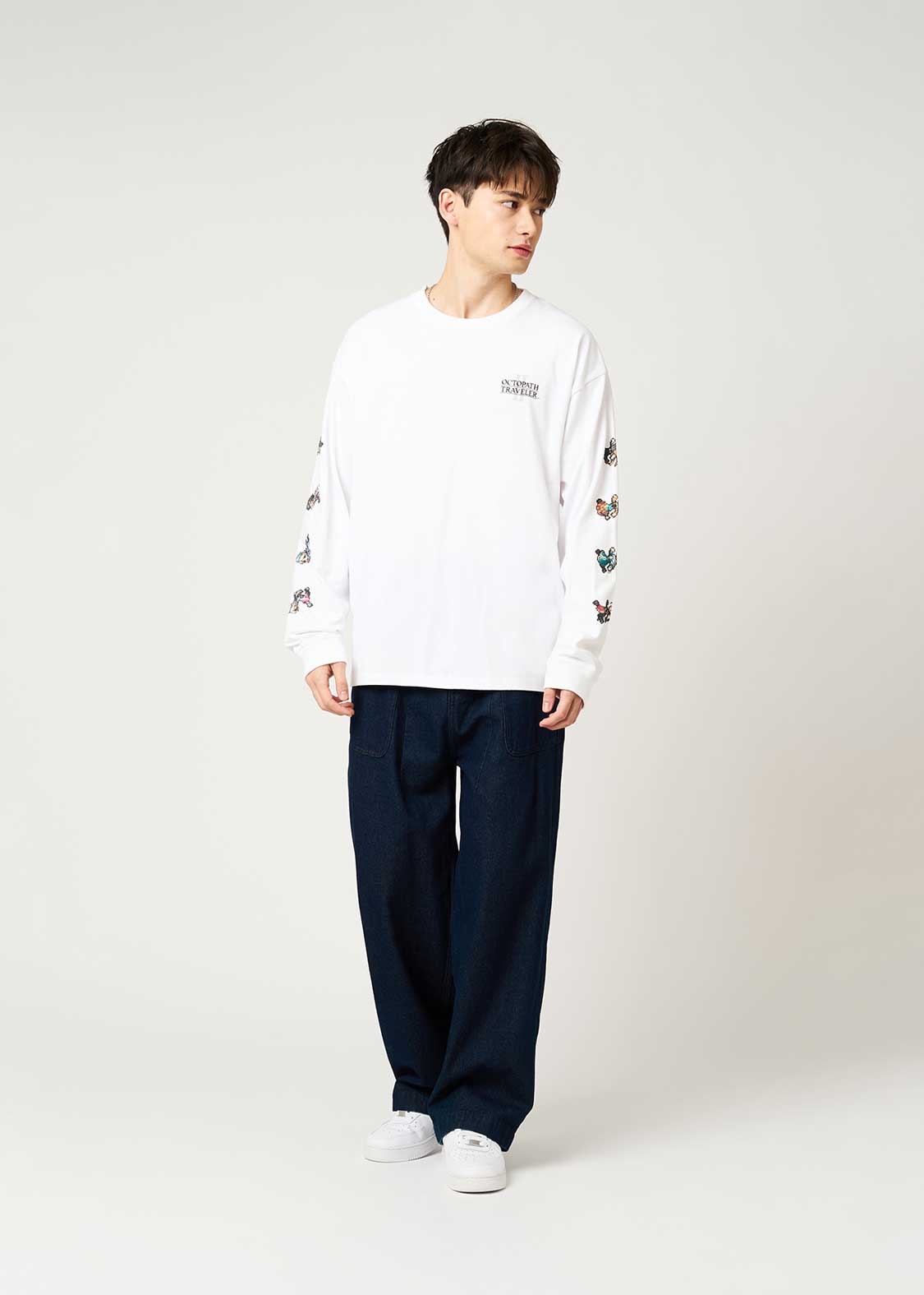 ・風合いの良い天竺を使用した、ゆったりとしたシルエットの袖口がリブタイプの長袖Tシャツ。