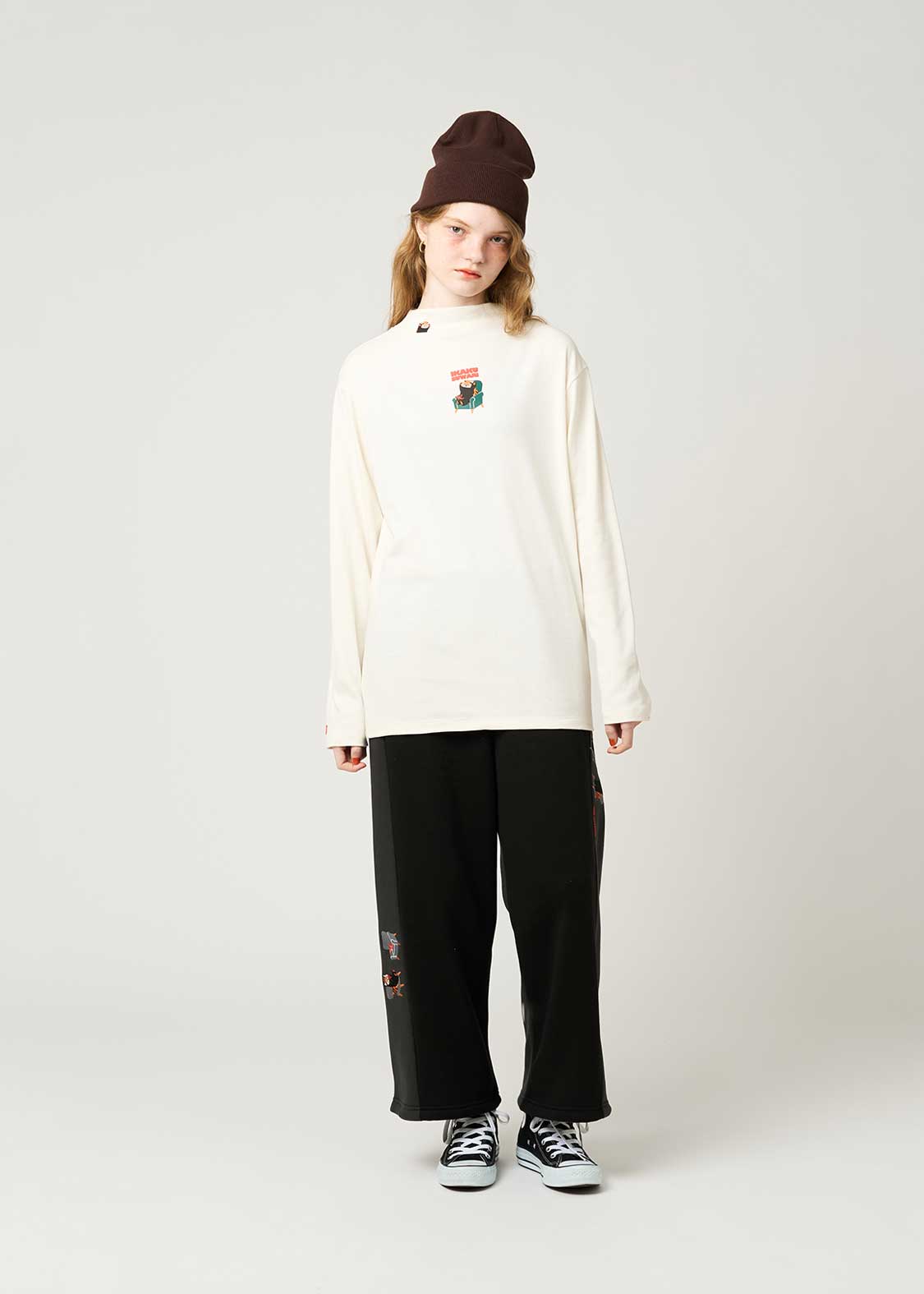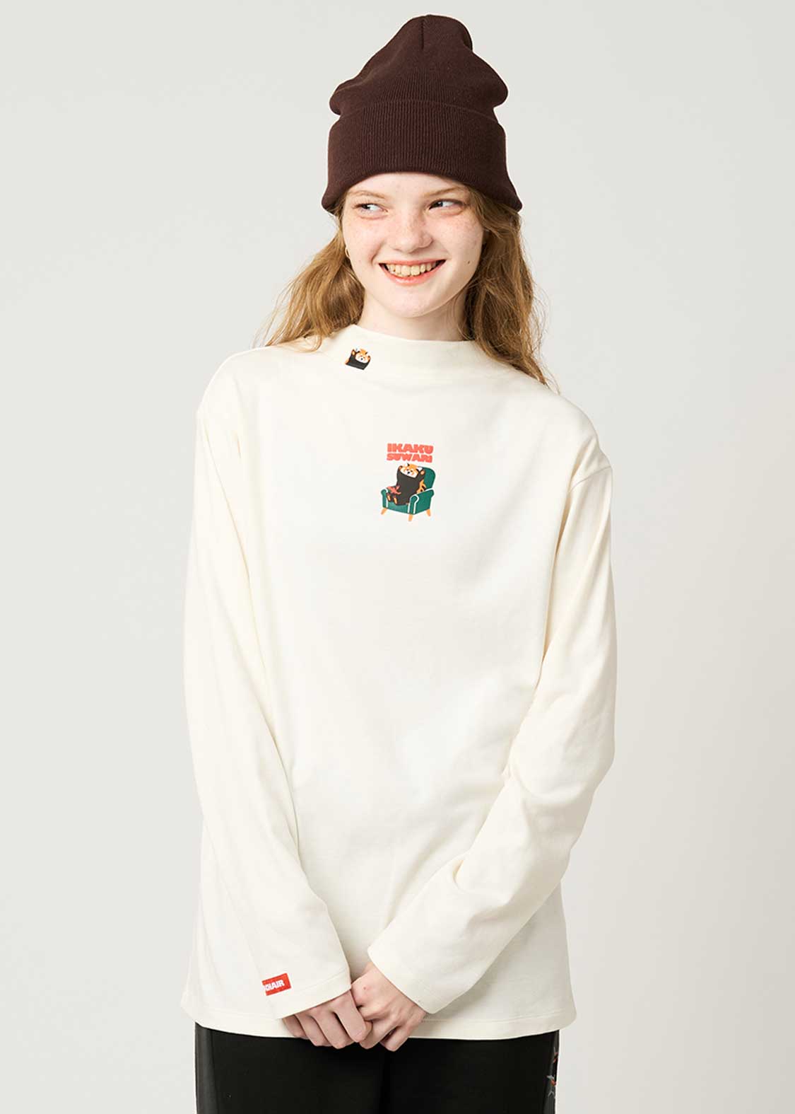 ・風合いの良いスムース生地を使用したベーシック型のハイネック長袖Tシャツ。