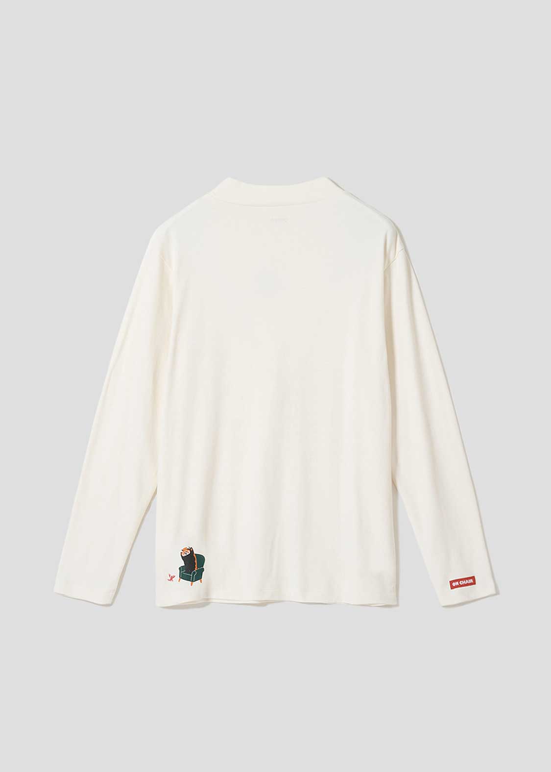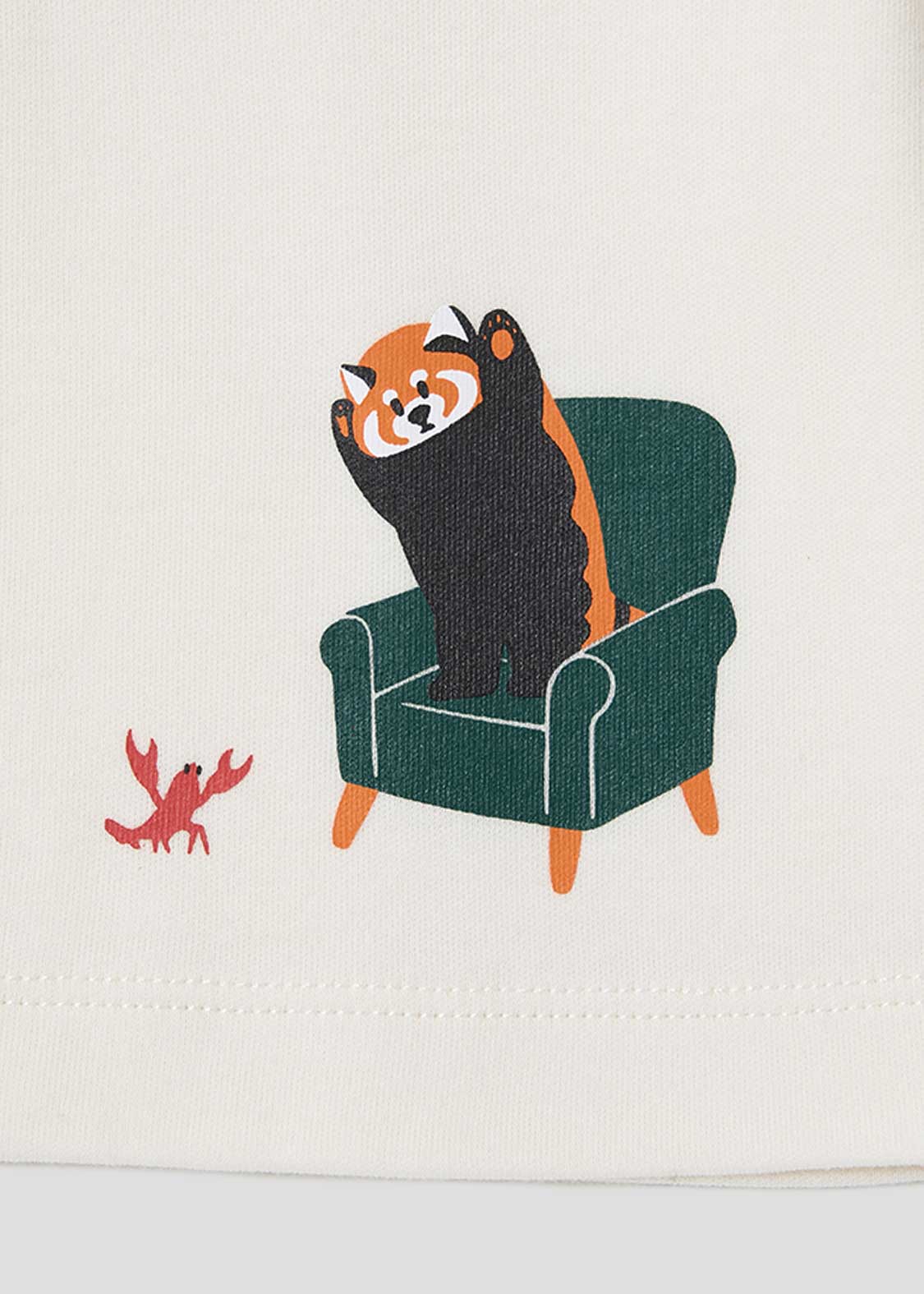 イスに座ってくつろぎながらも威嚇は欠かさないレッサーパンダ。キュートでありながら、シンプルなデザインに仕上げたところがポイントです。