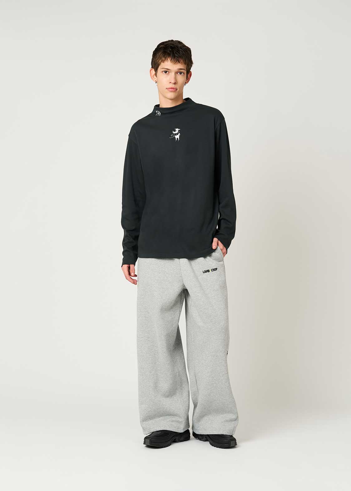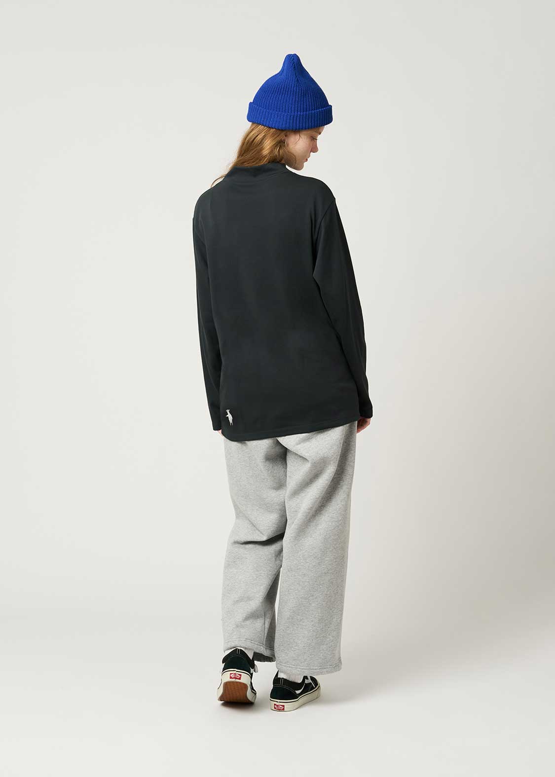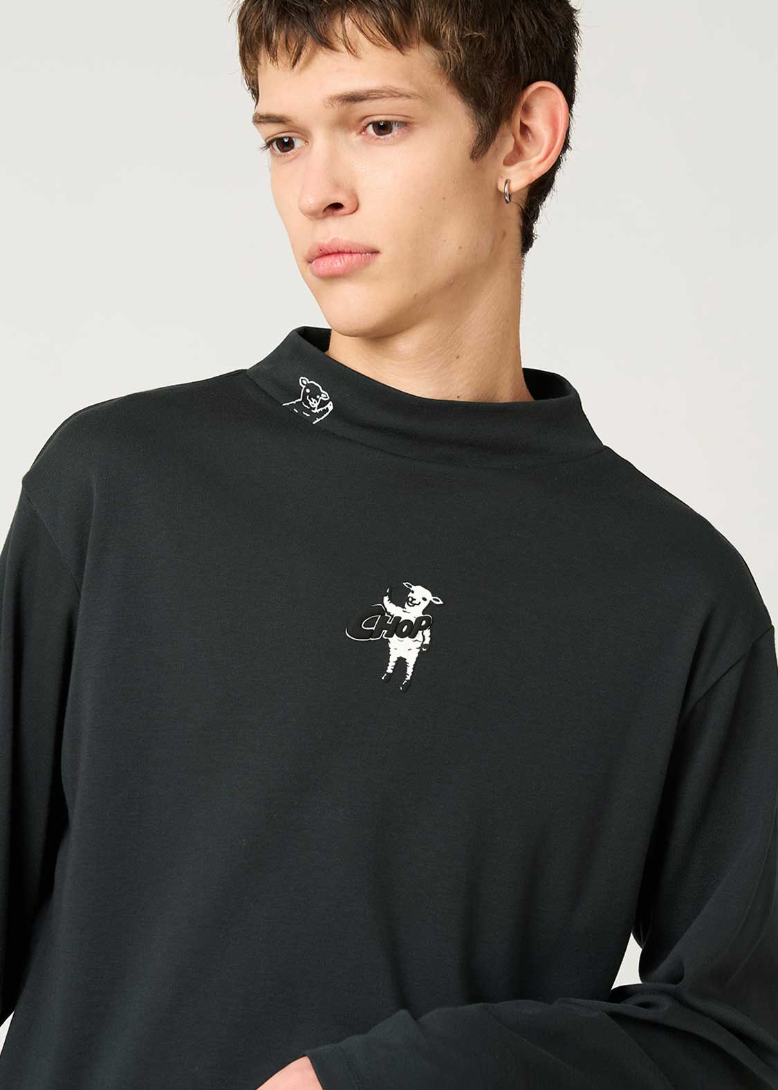 ・風合いの良いスムース生地を使用したベーシック型のハイネック長袖Tシャツ。