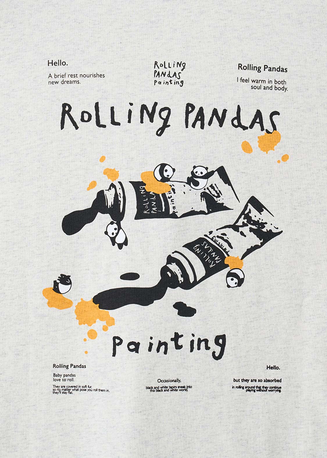 ローリングパンダズがどうやら絵の具のチューブの上を通ってしまったよう。絵の具と一緒に楽しく遊び続けているパンダたちです。