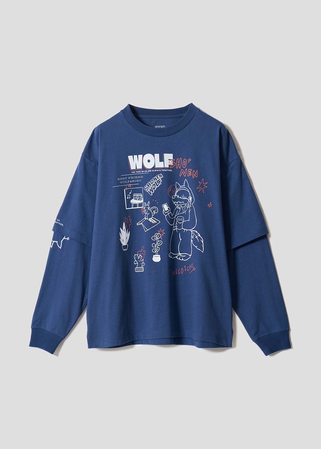 ・風合いの良い天竺素材を使用した、レイヤードデザインの長袖Tシャツです。