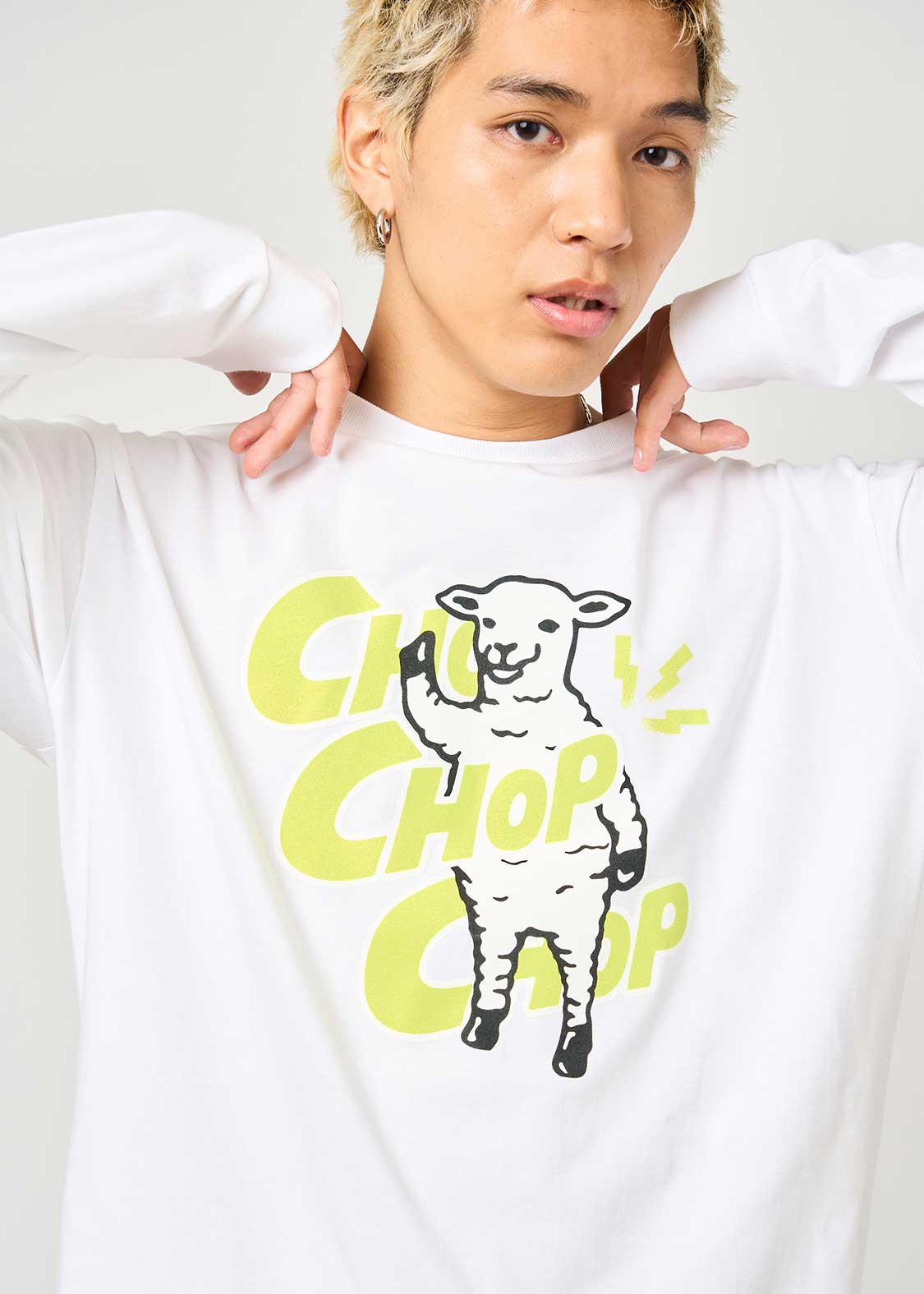 チョップ!チョップ!チョップ!かっこいいタイポグラフィと組み合わせたかっこいいラムチョップくんのデザインです。