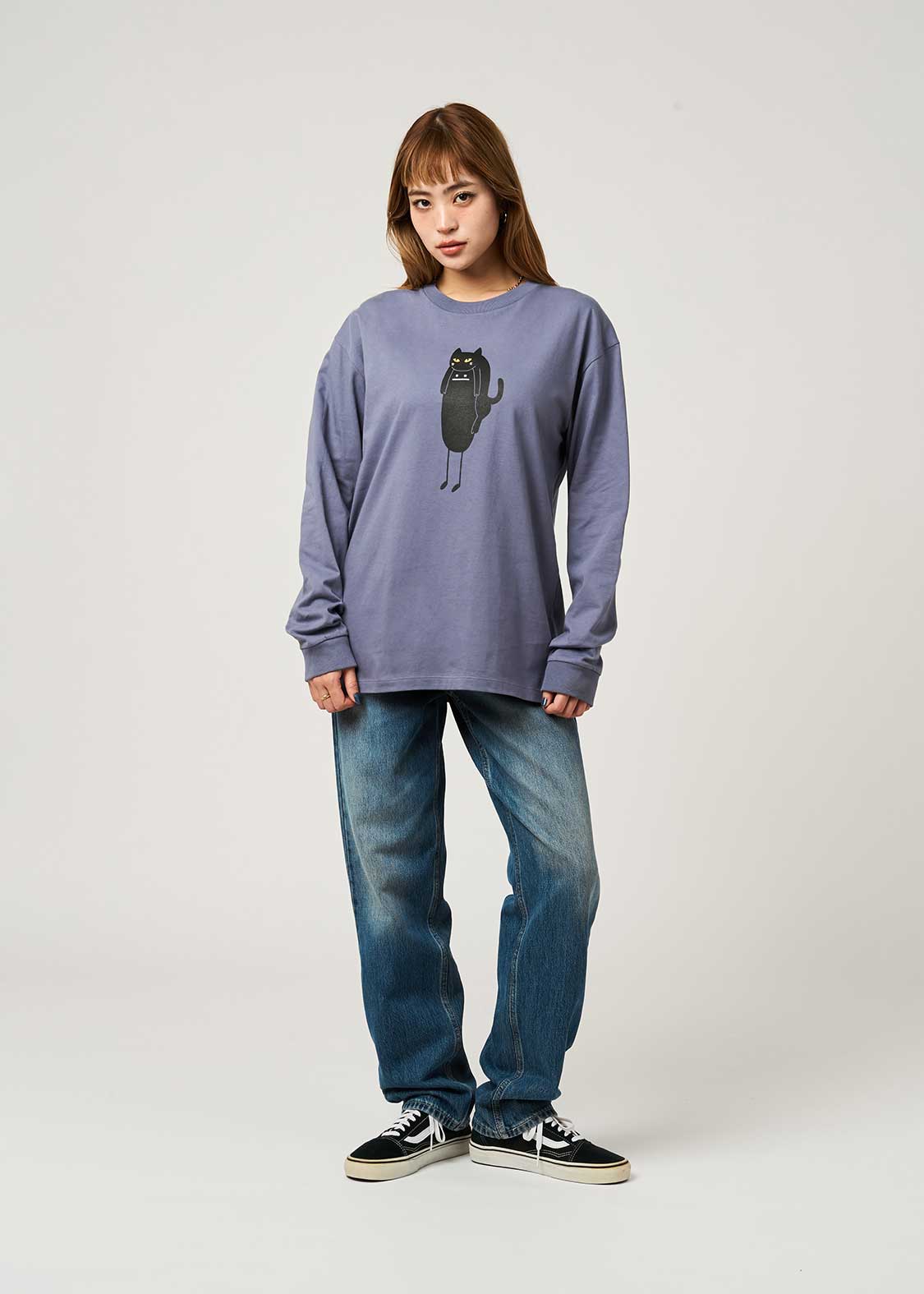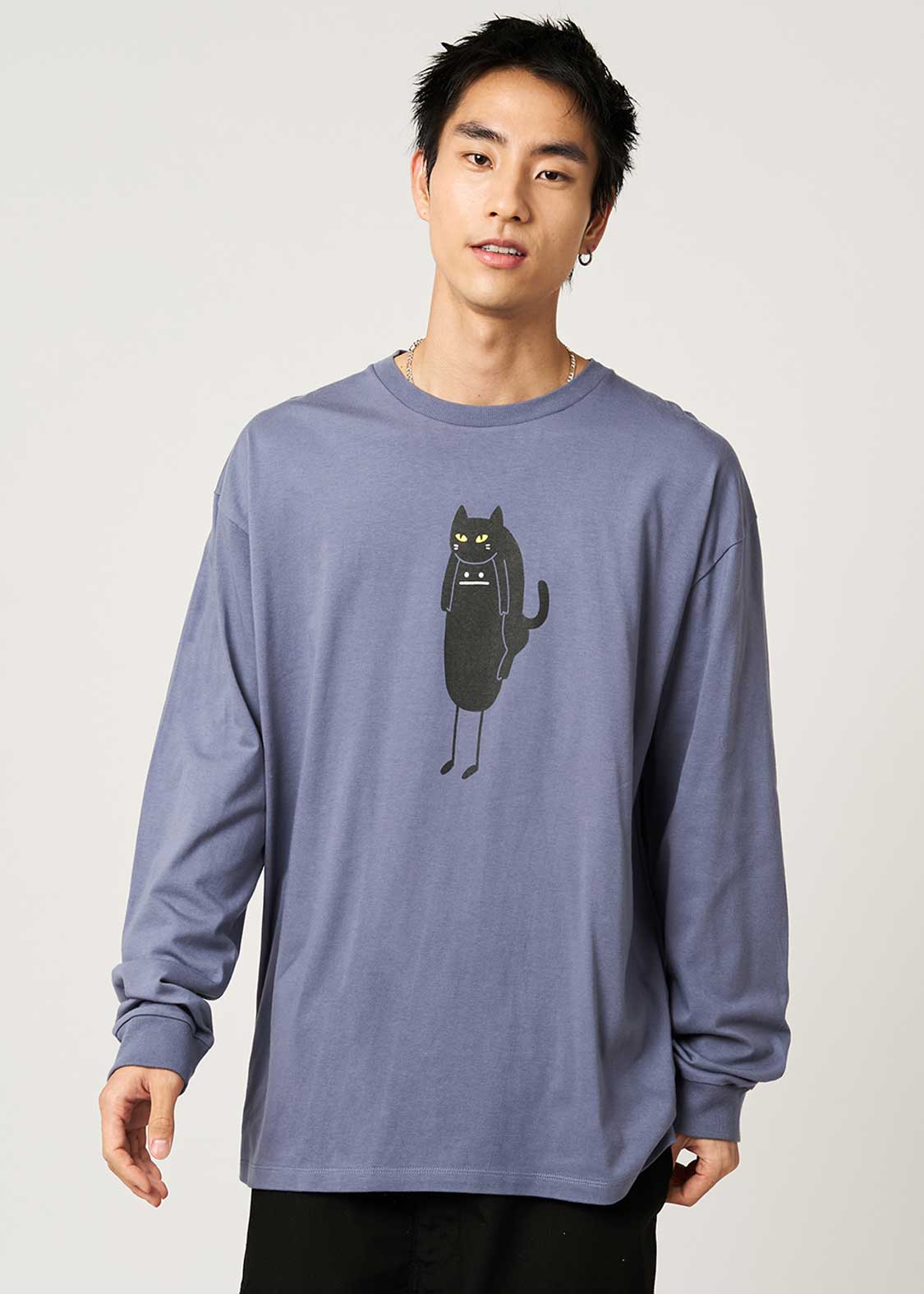 ・風合いの良い天竺を使用した、袖口がリブタイプの長袖Tシャツ。