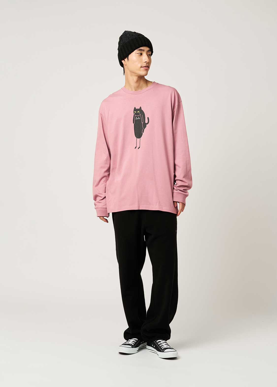 ・風合いの良い天竺を使用した、袖口がリブタイプの長袖Tシャツ。