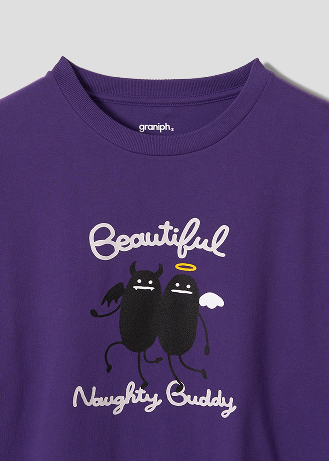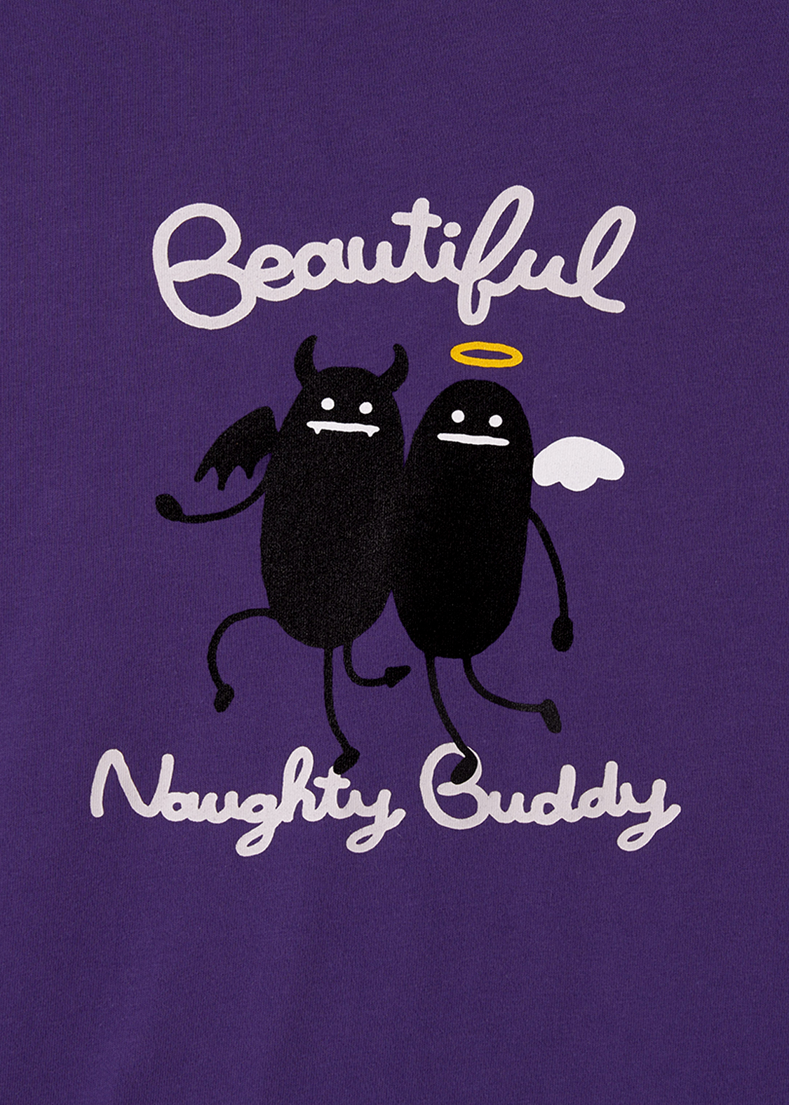 二本の角と輪っかをそれぞれ頭上に持つ、天使と悪魔のビューティフルシャドーが現れた!睨み合ったりする時もあるけれど、普段は仲良しな二人を描いたデザインです。