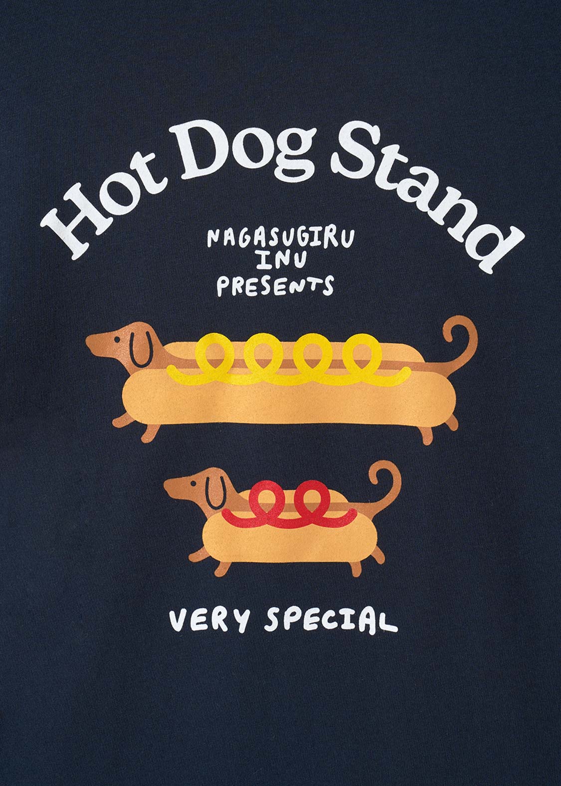 ナガスギルイヌがホットドッグとマッチング!かわいいアイコンとなったホットドッグスタンドのグッズをイメージしたグラフィックです。