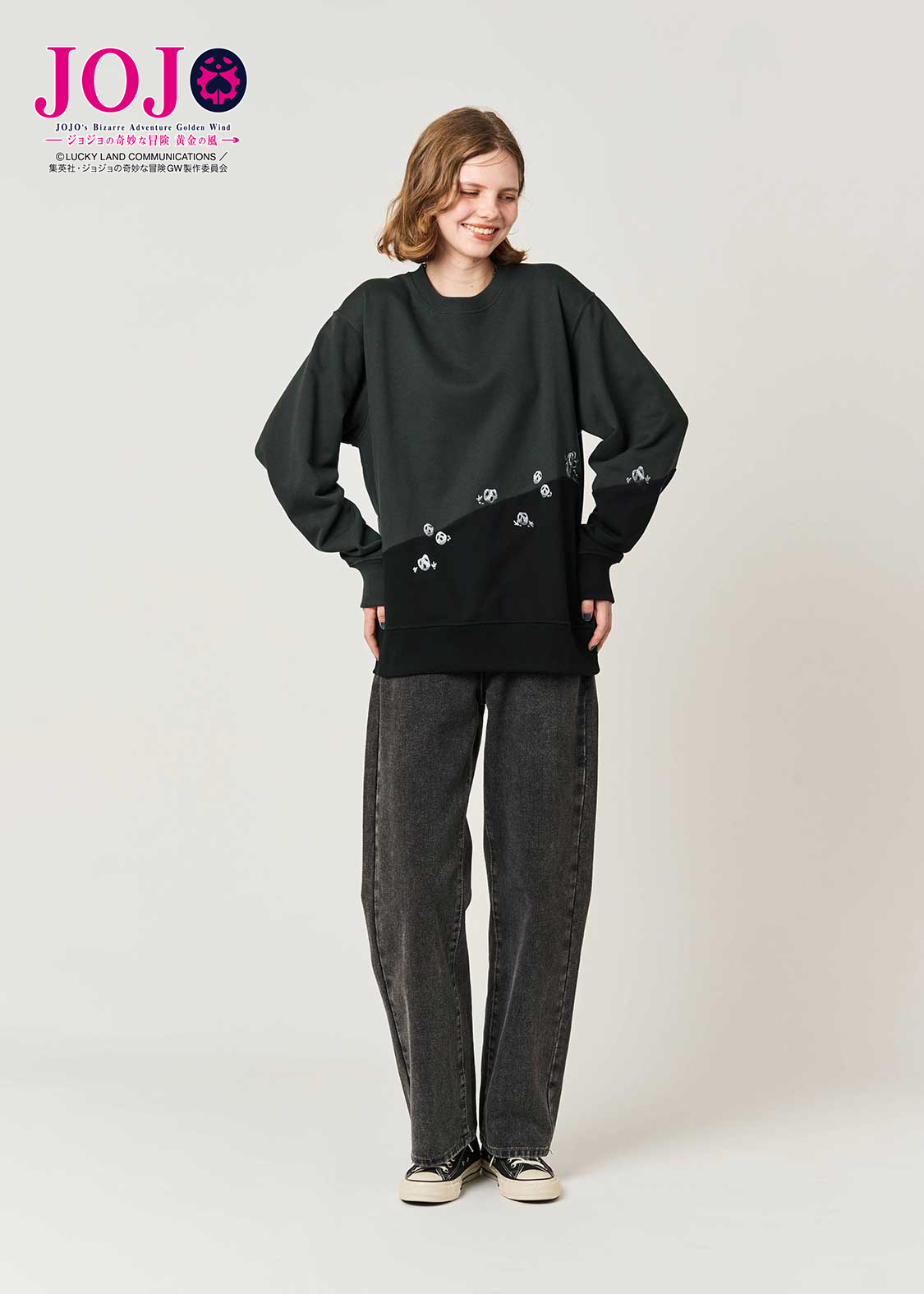 ジョジョコラボ第一弾からずっと5部とリゾット(メタリカ)を待ってました!念願かなって嬉しいです。ありがとうございます。 厚めの生地にちょこちょことメタリカが刺繍されているのも可愛いですが、首裏のハサミが特にお気に入りです!こわい! 一枚で着こなすには大き目なので、スタッフさんのコーディネートを参考にして下にブラウスなど着てみようと思います。
