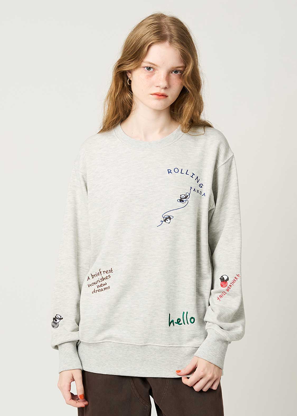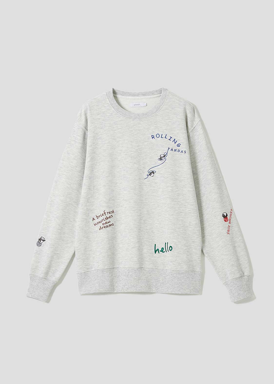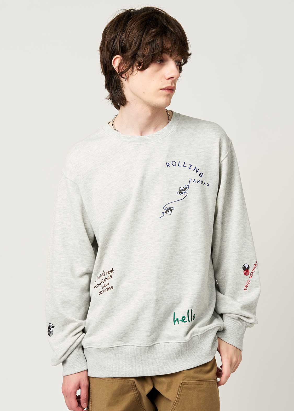毬のように体を丸めた赤ちゃんパンダが、ころころと転がり落ちていく。その愛らしい姿に思わずほっこり気分になる、キュートなデザインです。