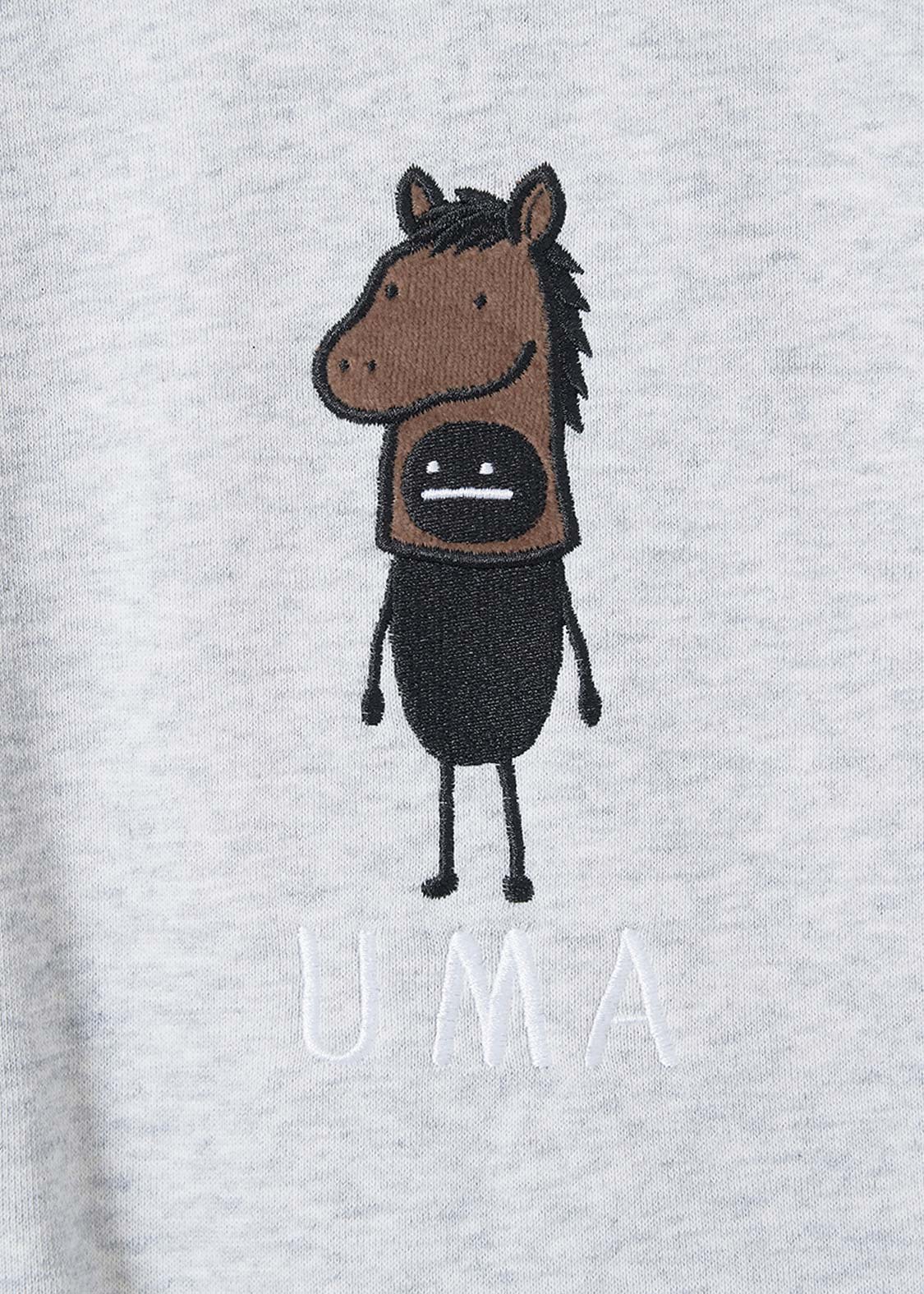 ウマの被り物とシャドー君の刺繍の質感が違っていて見てるだけで癒されます。ゆったりデザインとあるようにドロップショルダーなのでゆるゆるした感じが可愛いです。