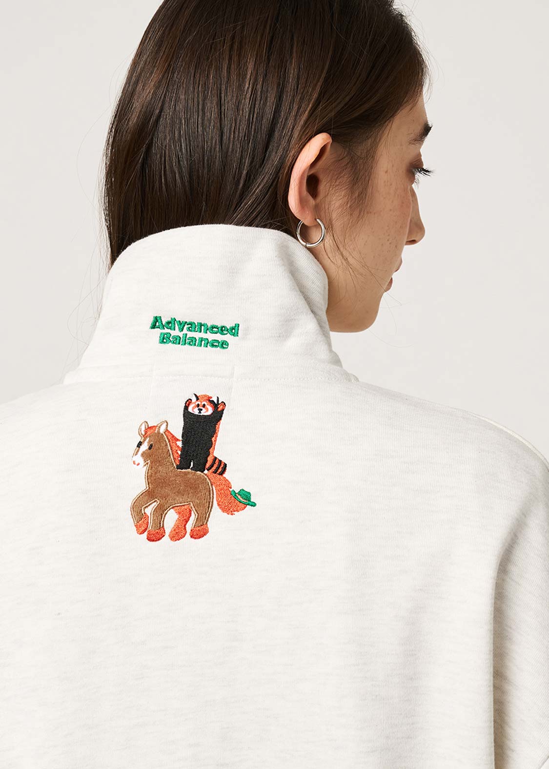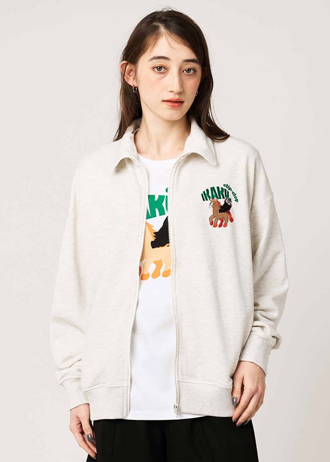 当方154センチでMサイズ購入しました まず、お馬さんとイカクちゃんがプリントでなく、刺繍で可愛いです。色も使いやすい。 ジップアップなので、トップスとしても羽織りとしても使えるし、内側が裏起毛じゃない所もオールシーズン使えるから良いです