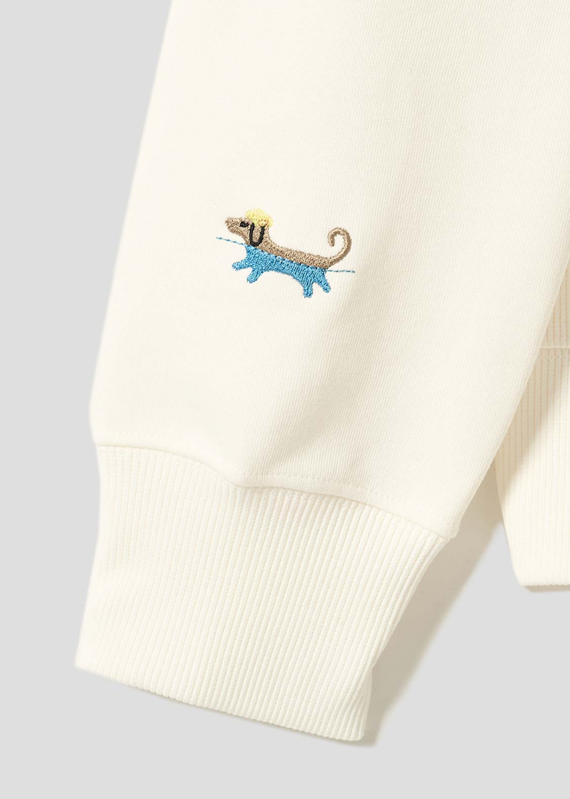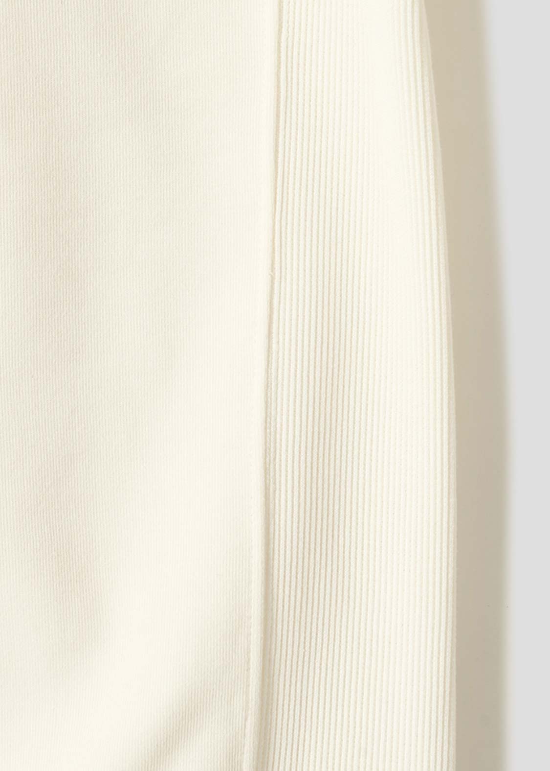 ・身頃の両脇をリブにし、首元はリブで生地を挟み込むバインダー仕様に仕上げ、着たときのバランスを意識したつくりにしています。