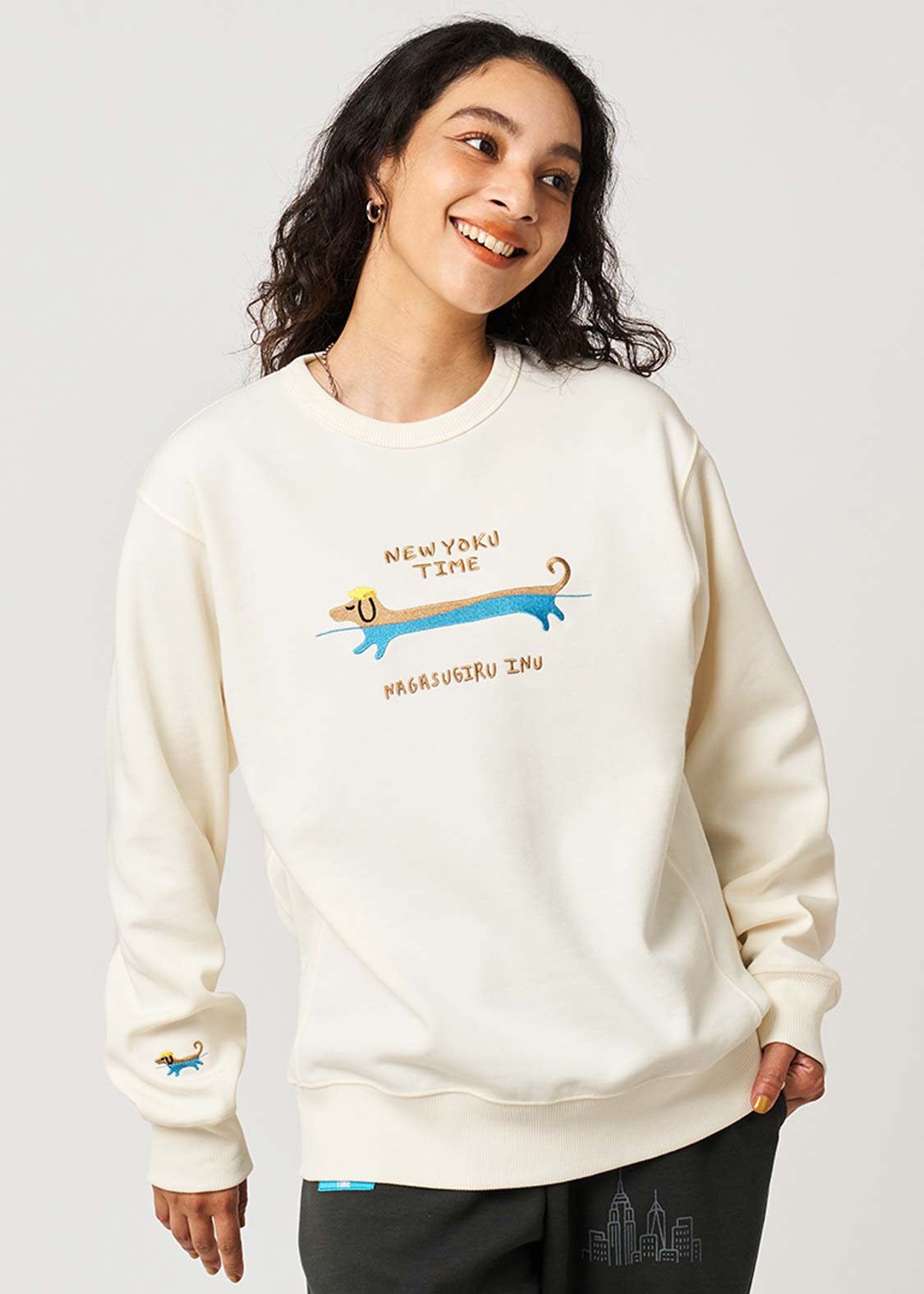 ナガスギルイヌ、のんびりゆったり入浴タイム。「入浴」を「New Yoku」表記にし「New York」と掛けた遊び心もポイントです。
