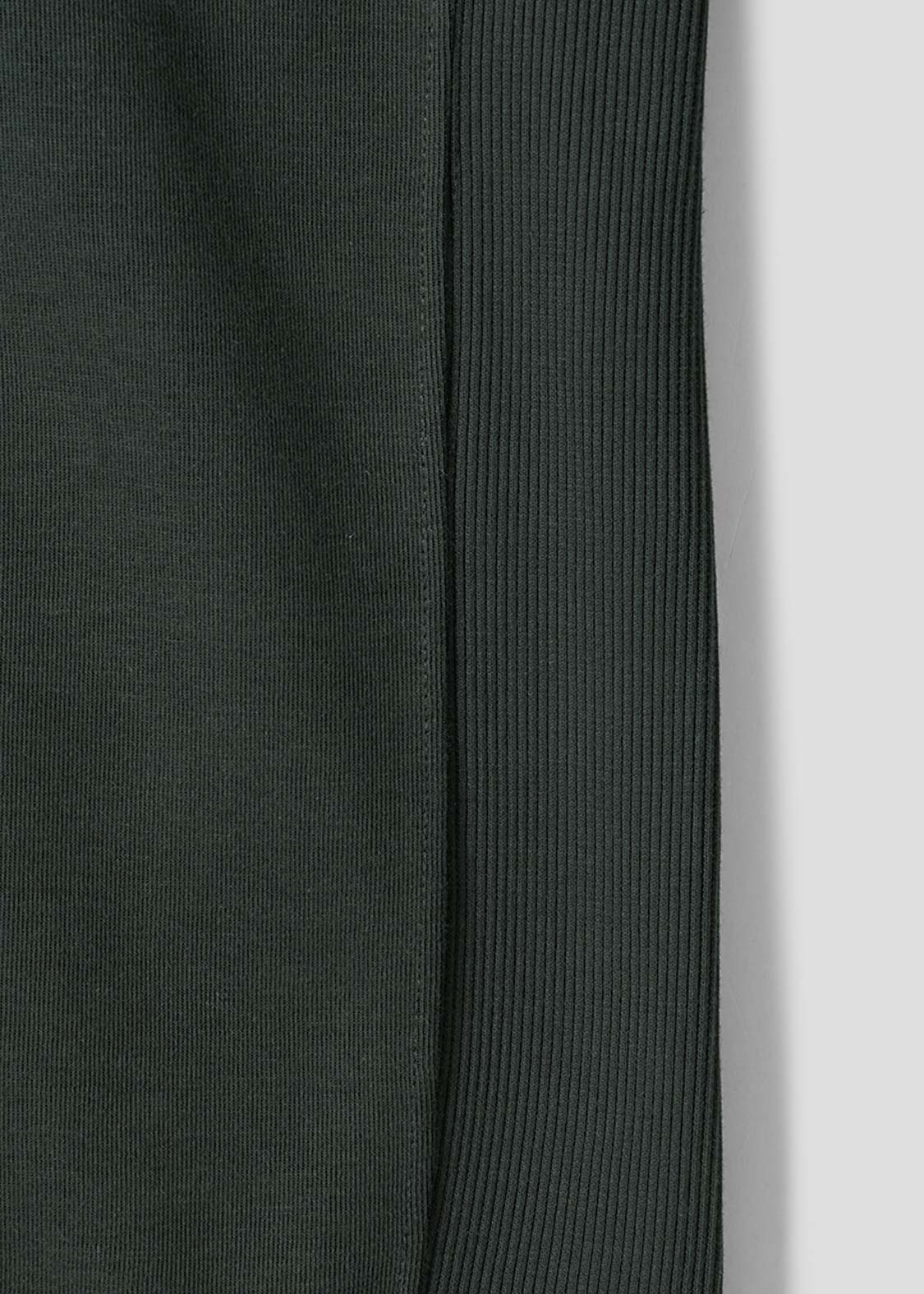 ・身頃の両脇をリブにし、首元はリブで生地を挟み込むバインダー仕様に仕上げ、着たときのバランスを意識したつくりにしています。