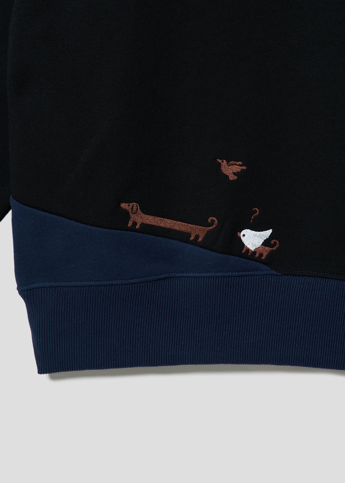 ナガスギルイヌと、シーツをかぶりゴーストの仮装を楽しんでいるフツウノイヌのグラフィック。ゴーストというより小鳥に見えちゃうところがチャーミングです。
