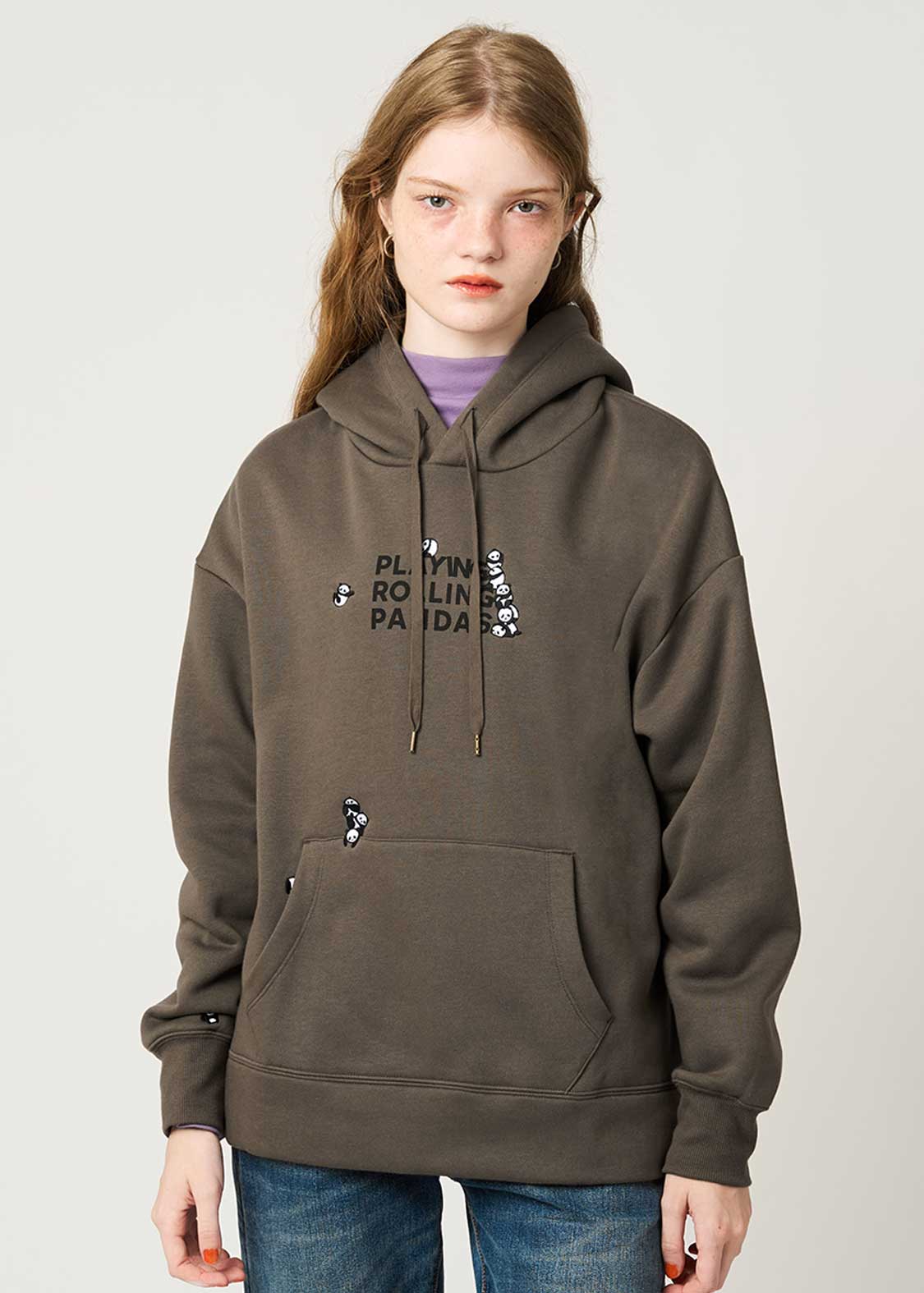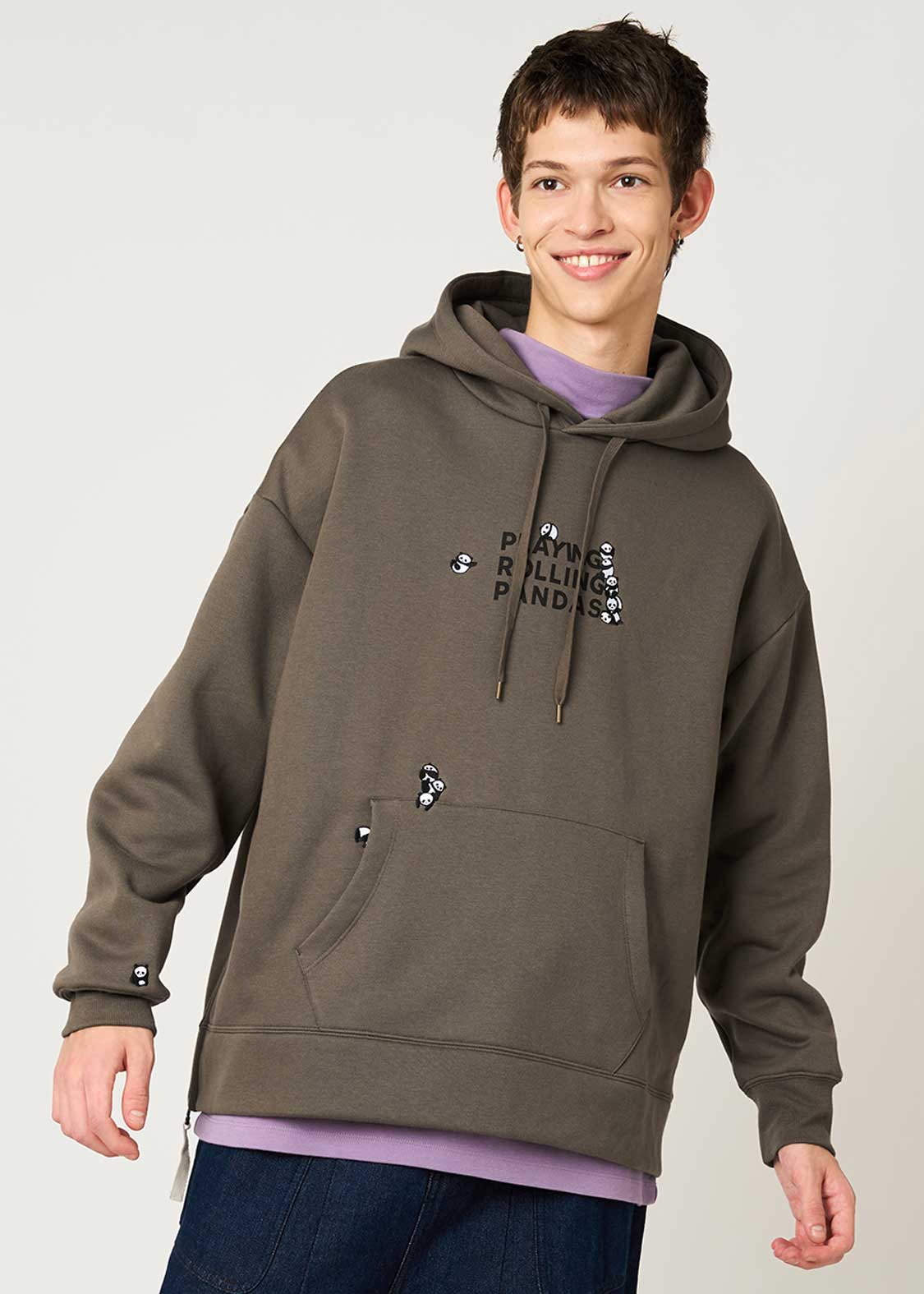 毛糸とコロコロ絡まりながら楽しむローリングパンダズ。編み物ショップをイメージし、毛糸と戯れる姿を温かみのあるデザインで表現しました。