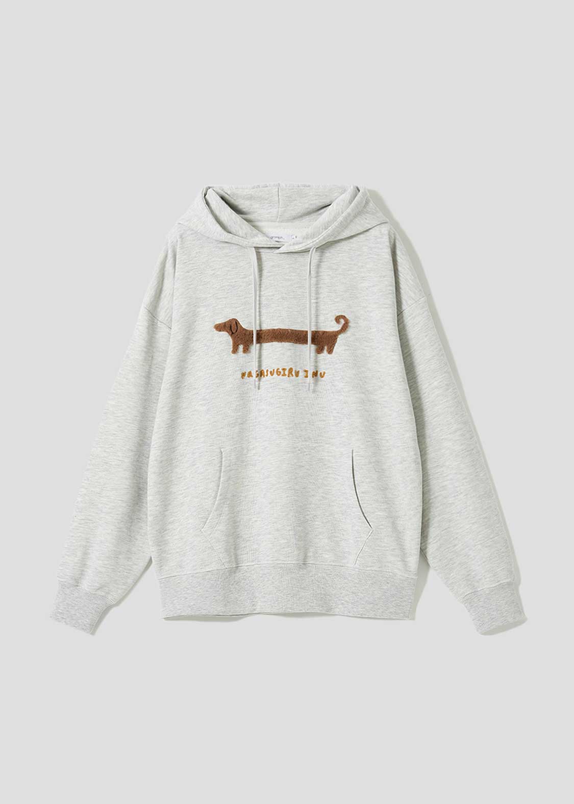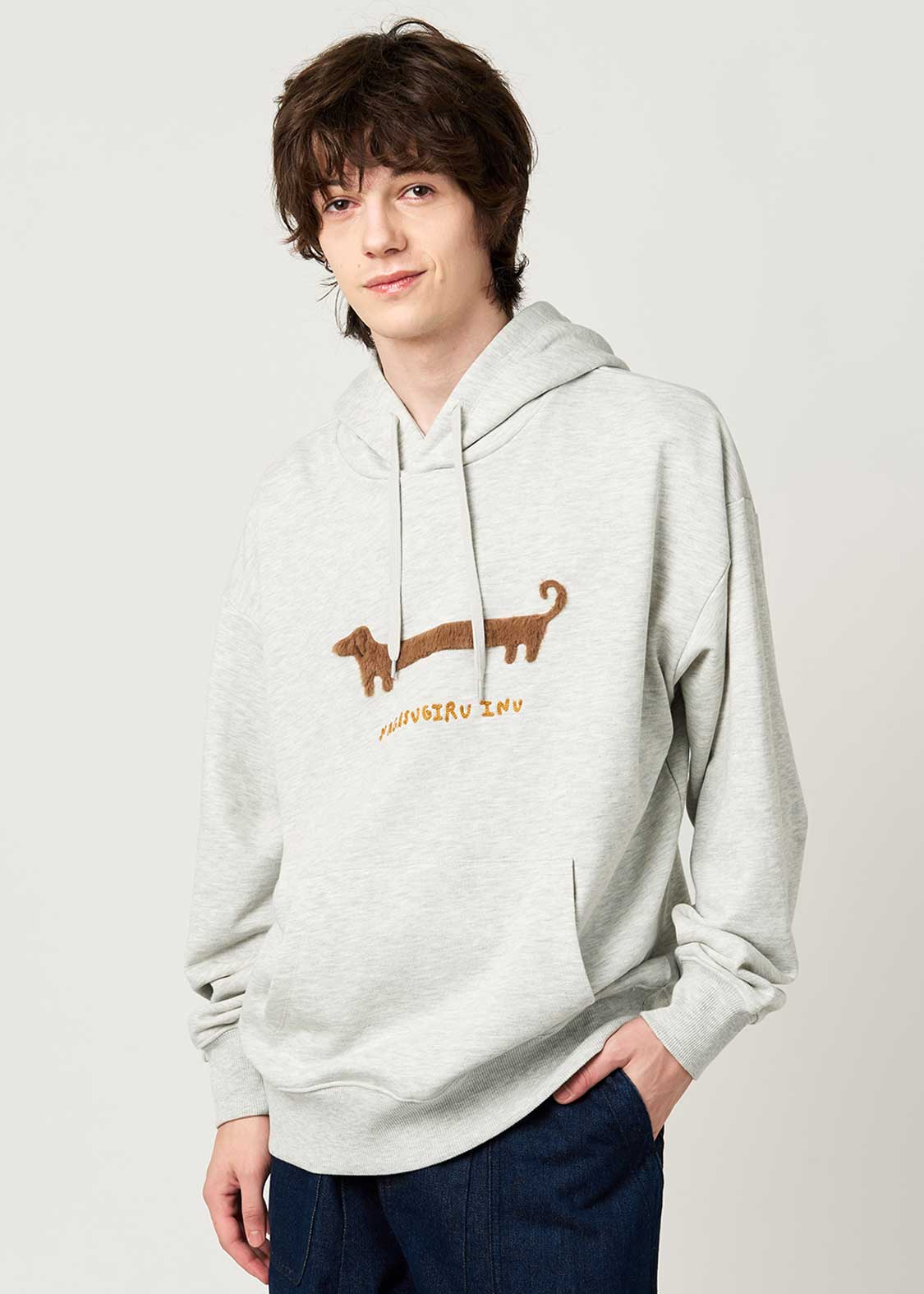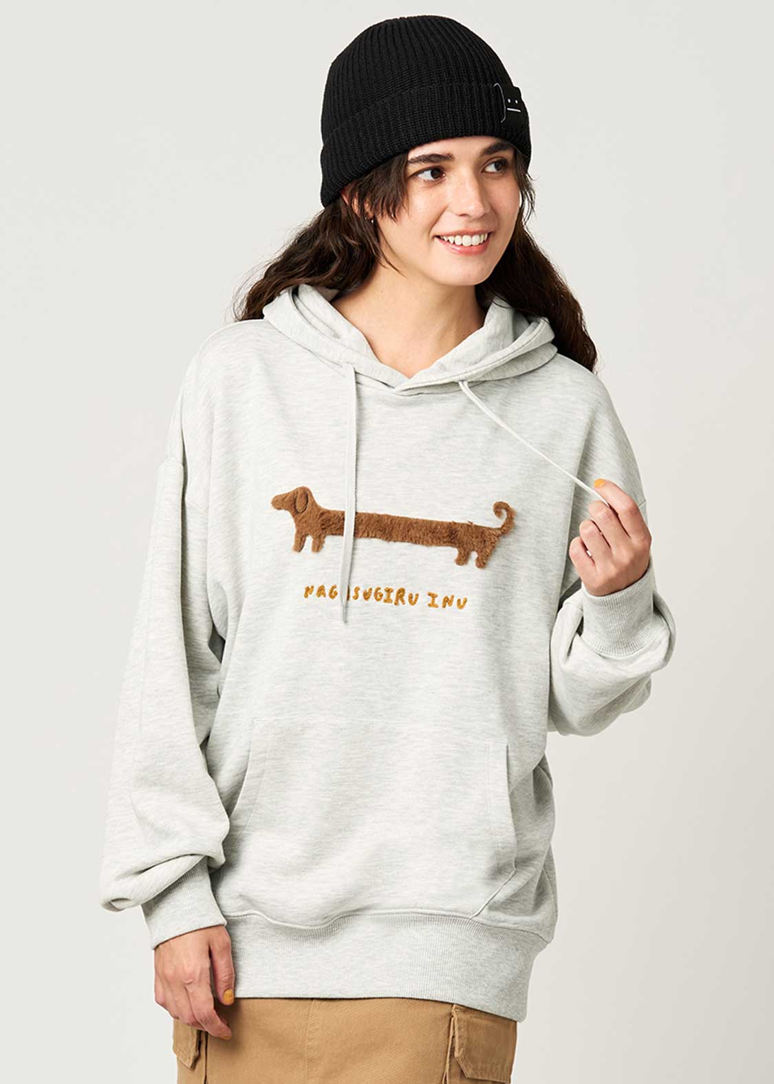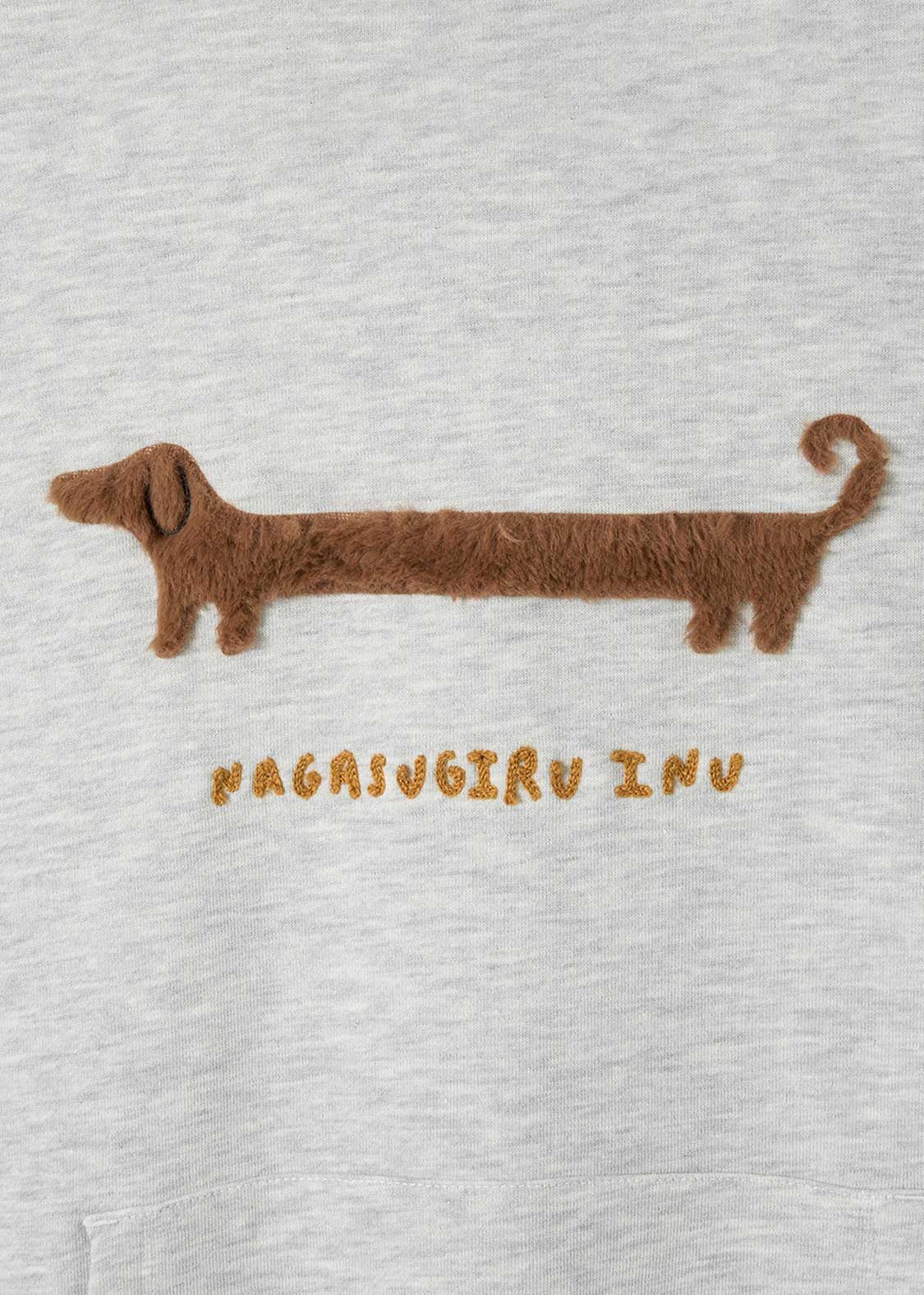 びよーんと伸びた長い胴、ロゴにもある通りまさに「ナガスギルイヌ」。決してダックスフントではなく、あくまで「ナガスギルイヌ」なのです。ユニークなコンセプト、思わず和んでしまう癒やしに溢れた作品です。