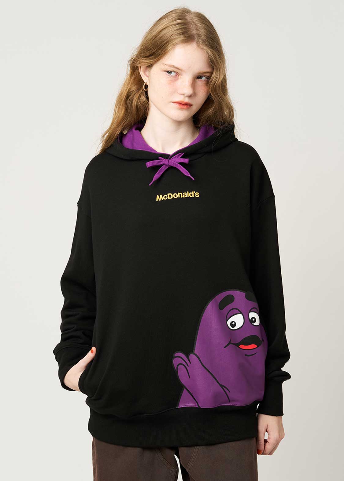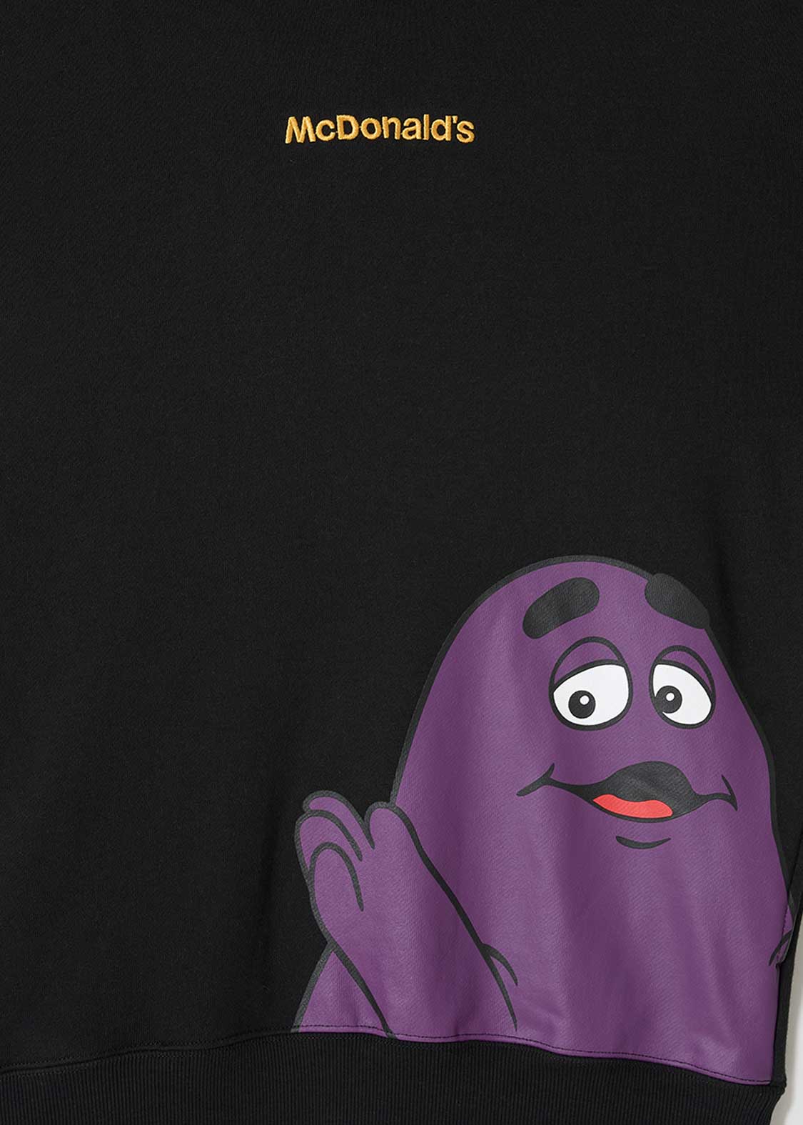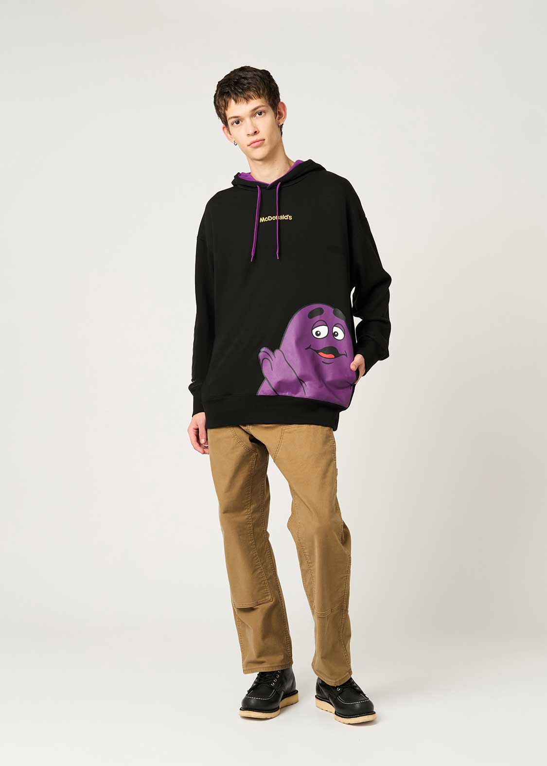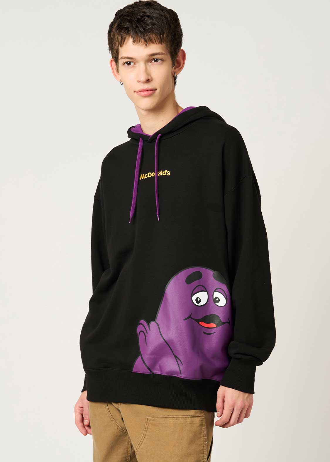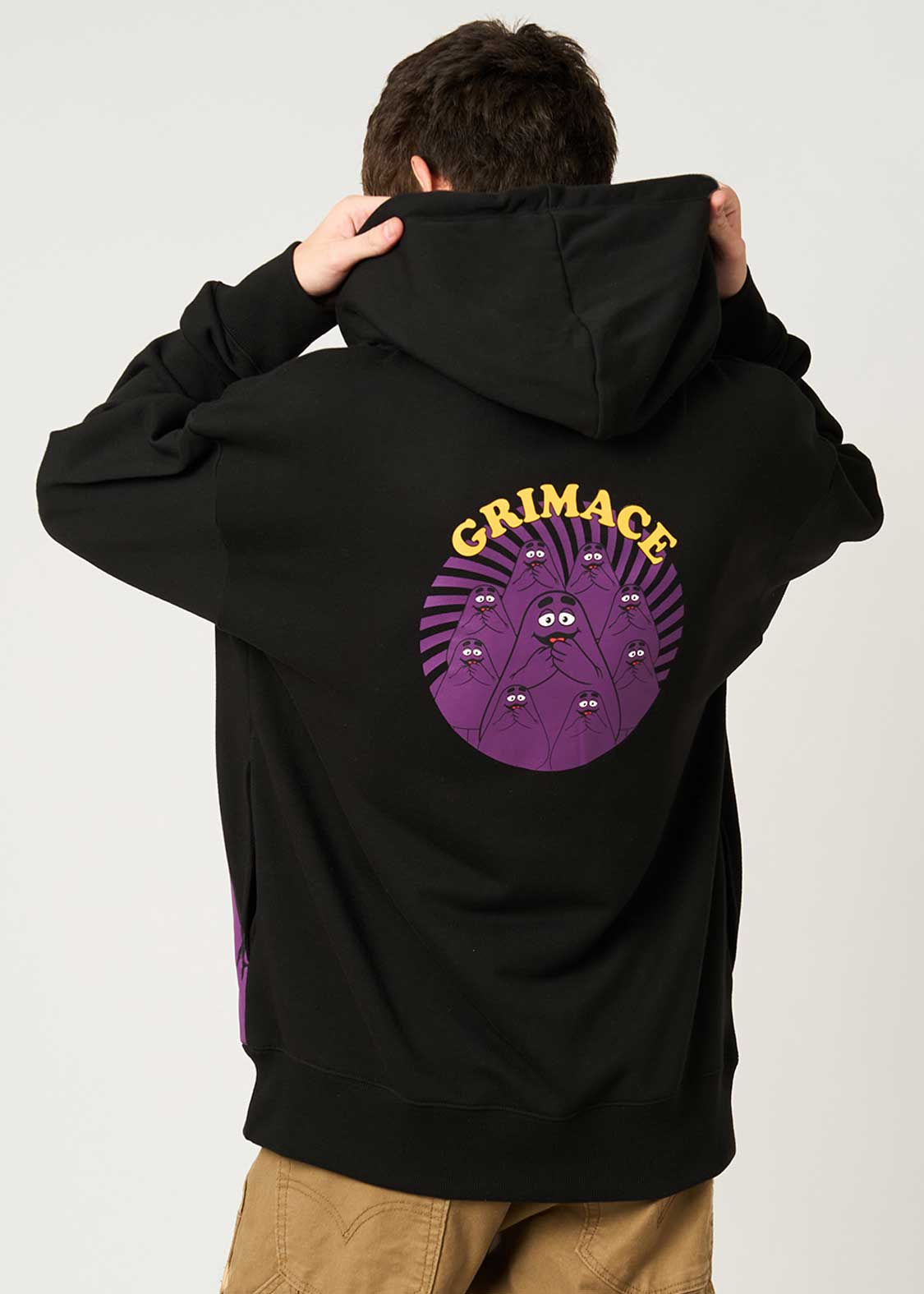 マックシェイクが大好きなキャラクター、グリマスをフロントとバックにプリントした大胆なデザイン。フロントのロゴは刺繍で表現しました。これを着てマックシェイクを飲みに行こう!