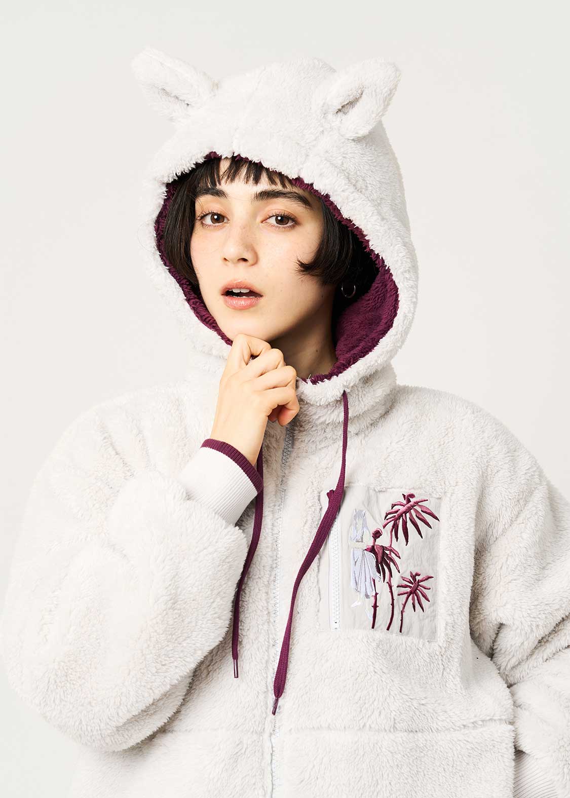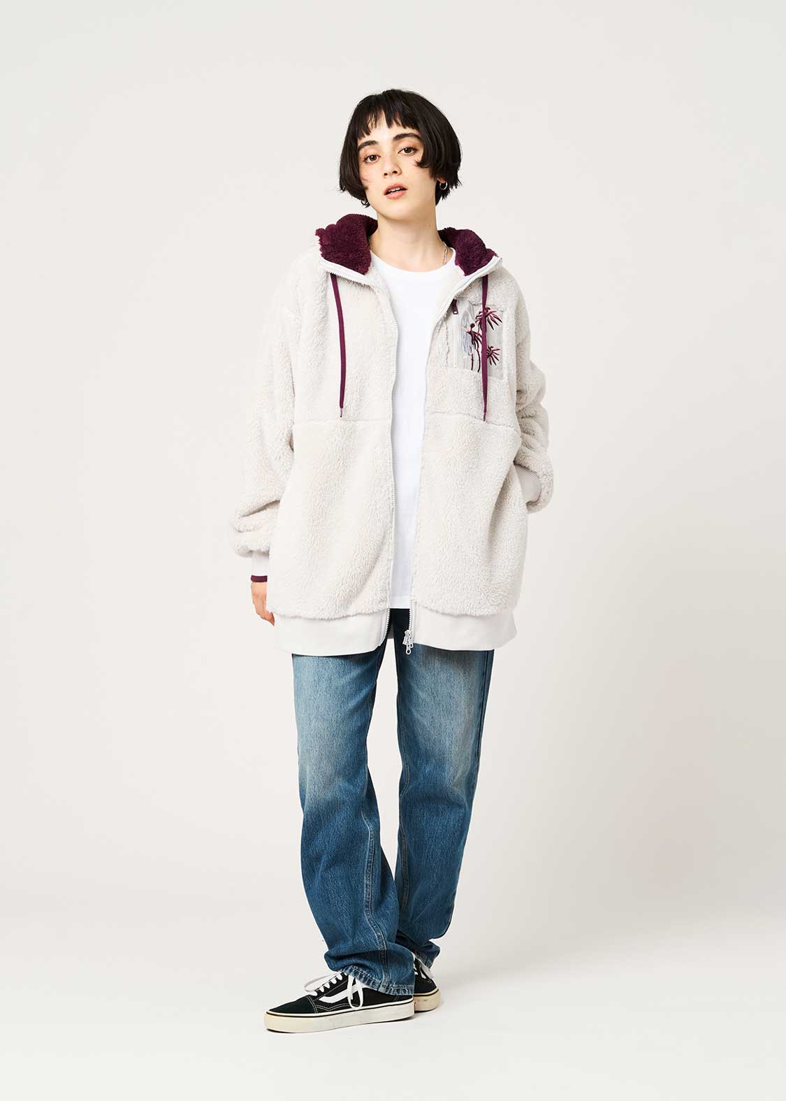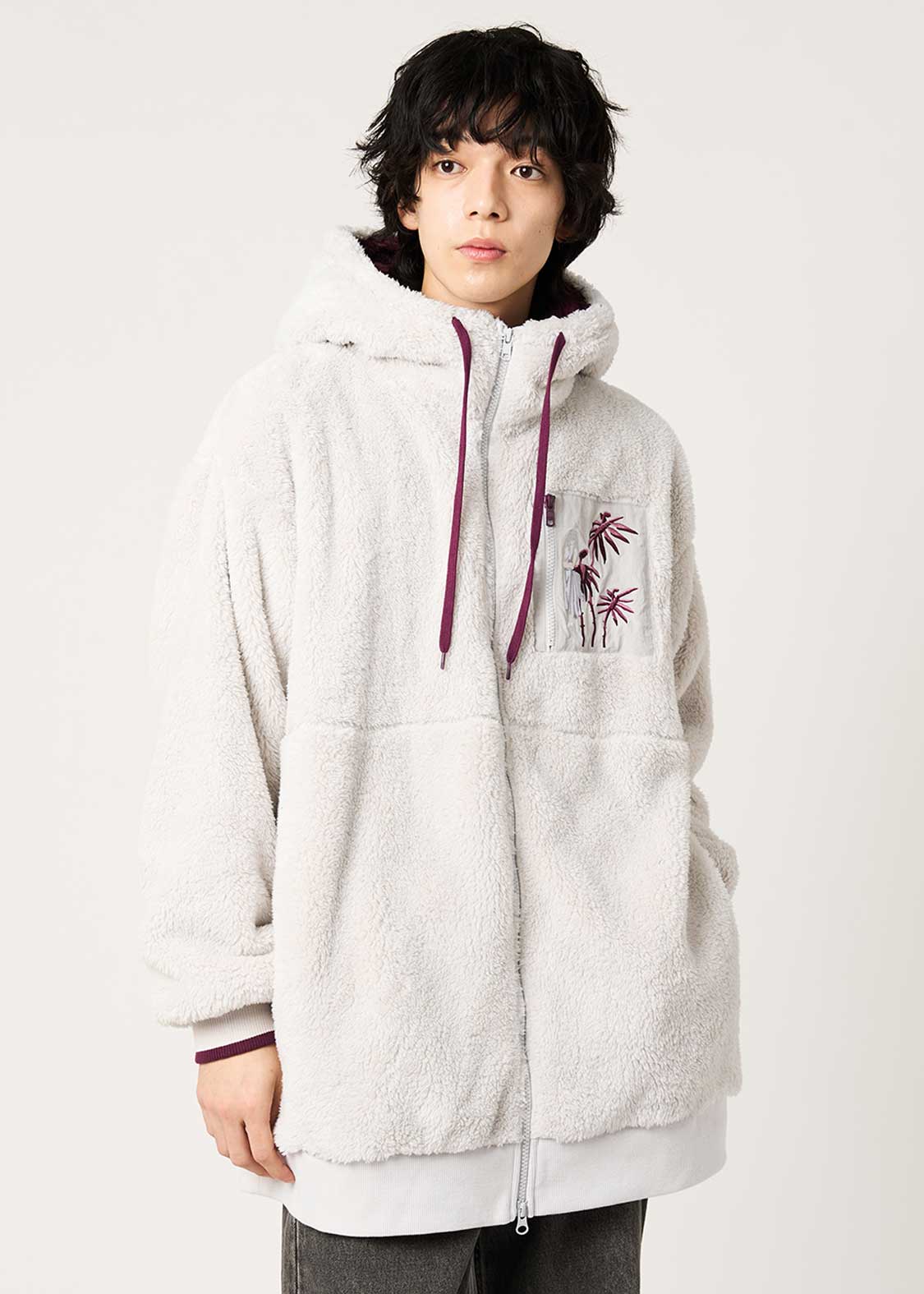 ・柔らかい生地感のボア素材を使用した、ロング丈のジップパーカー。