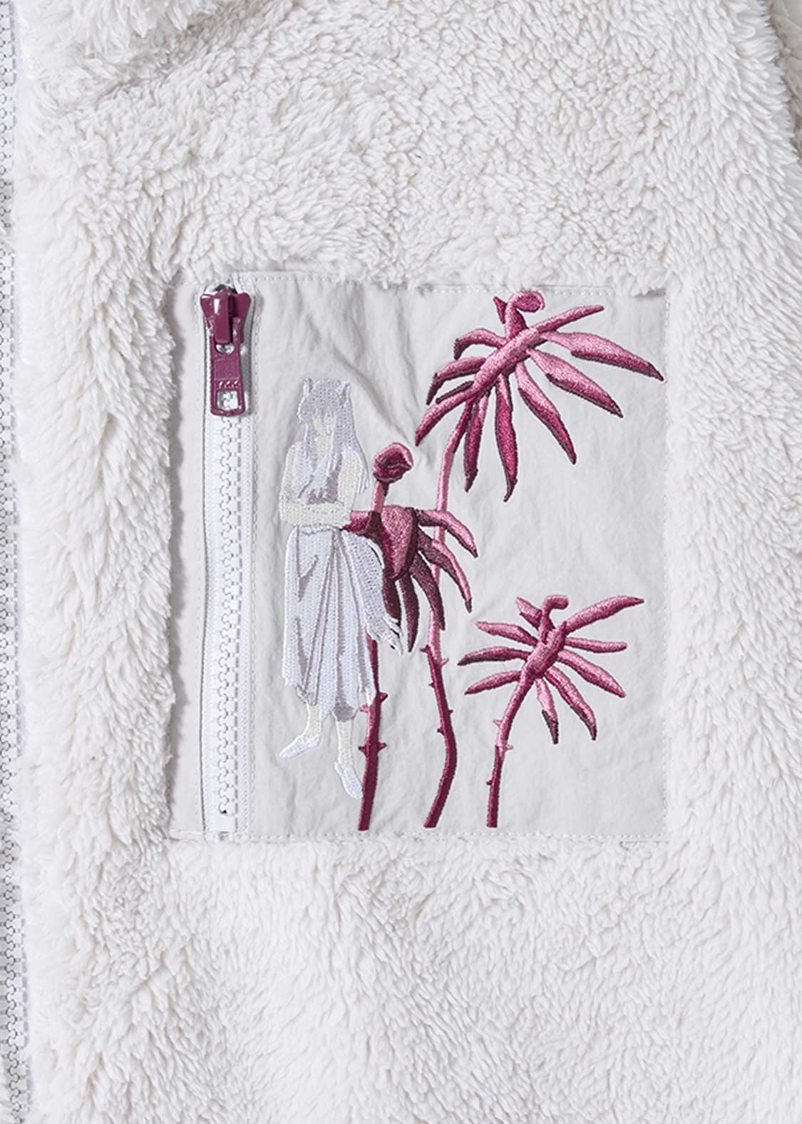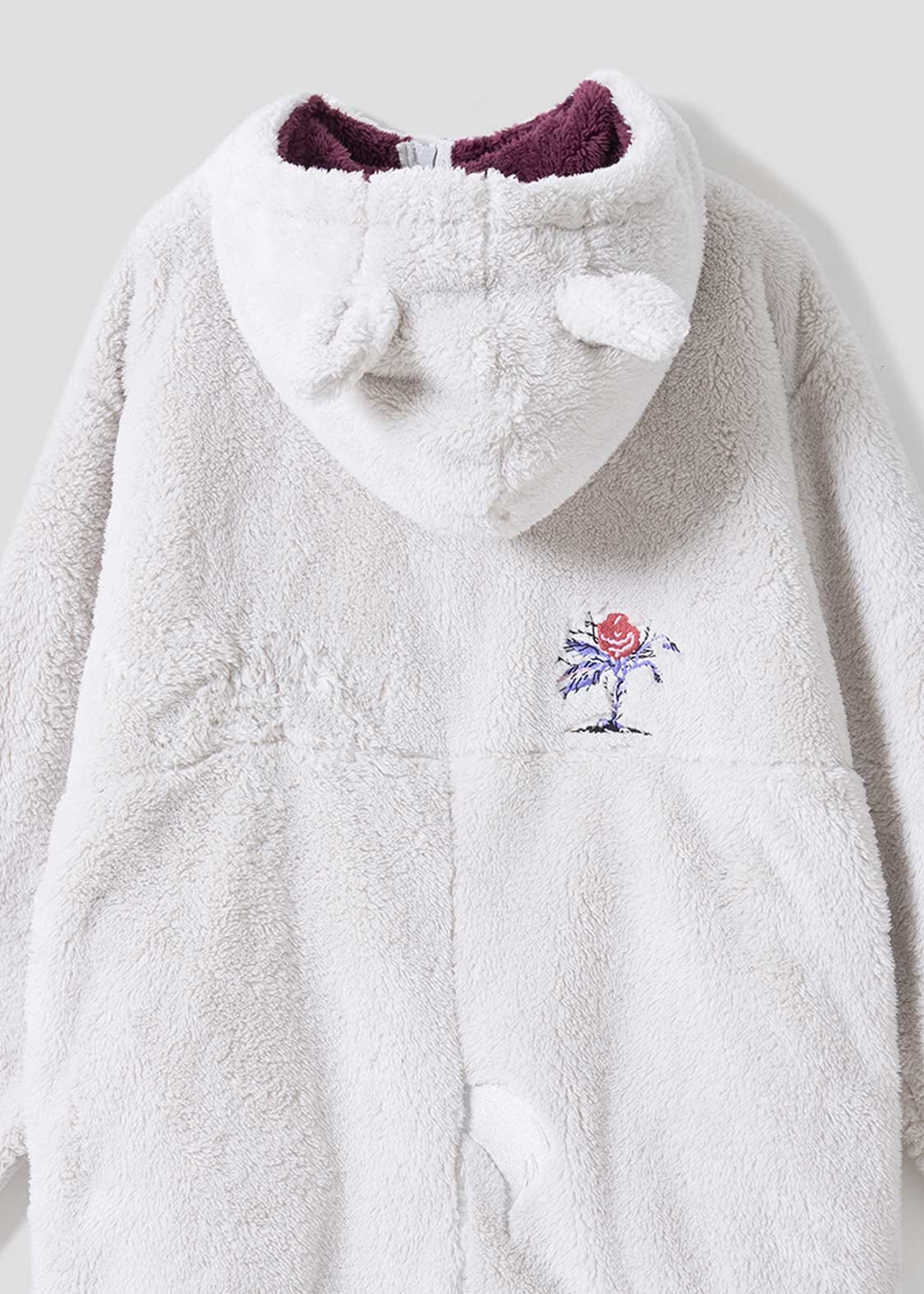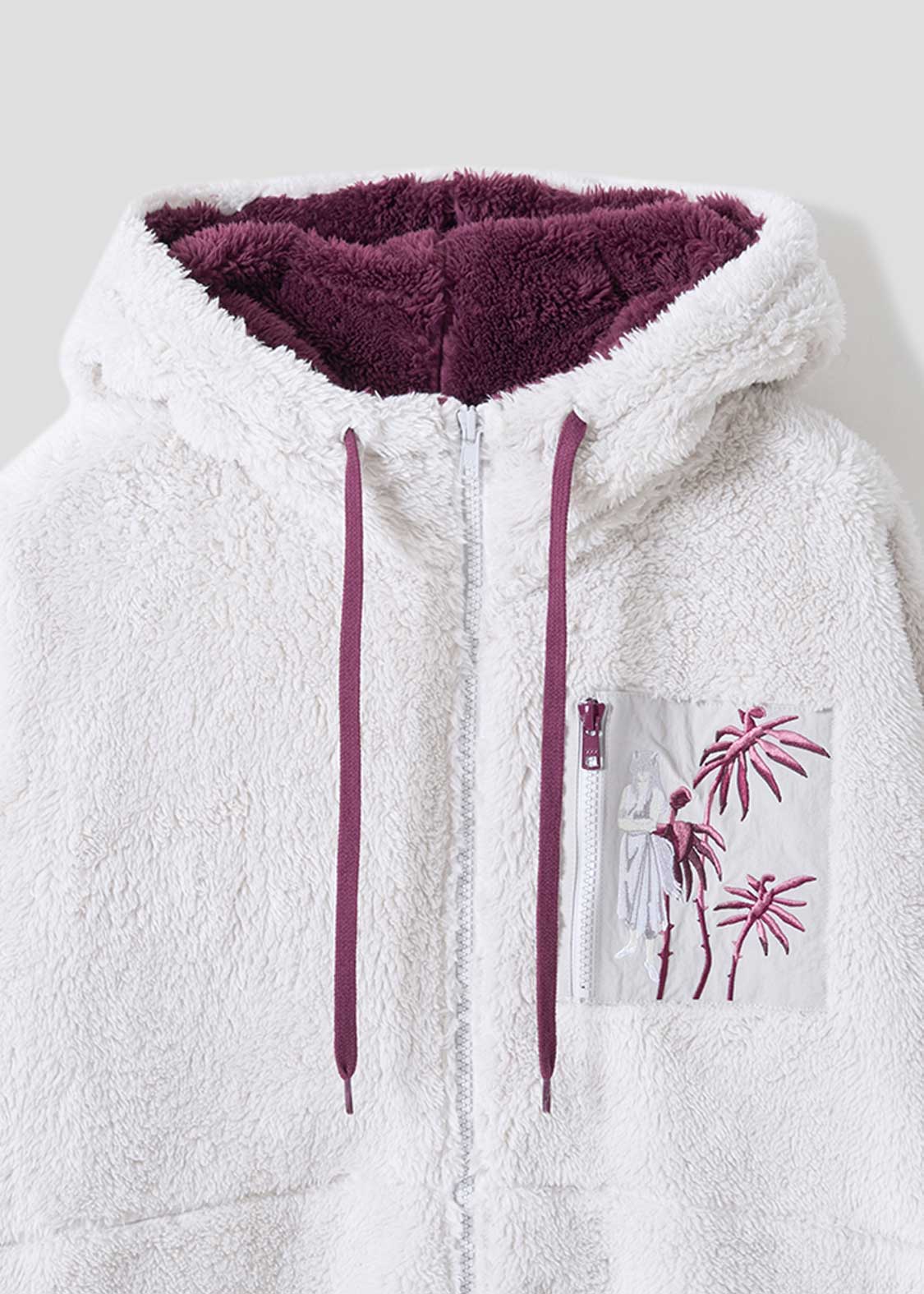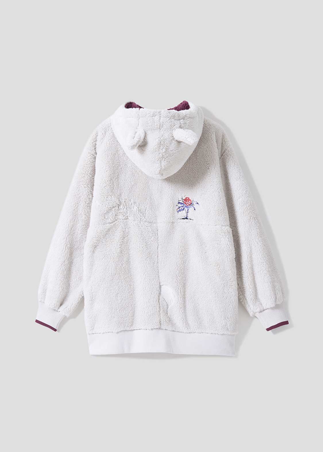 ・柔らかい生地感のボア素材を使用した、ロング丈のジップパーカー。