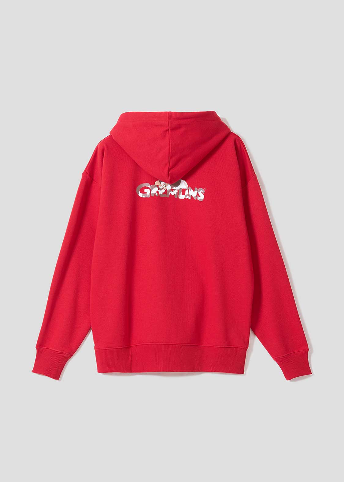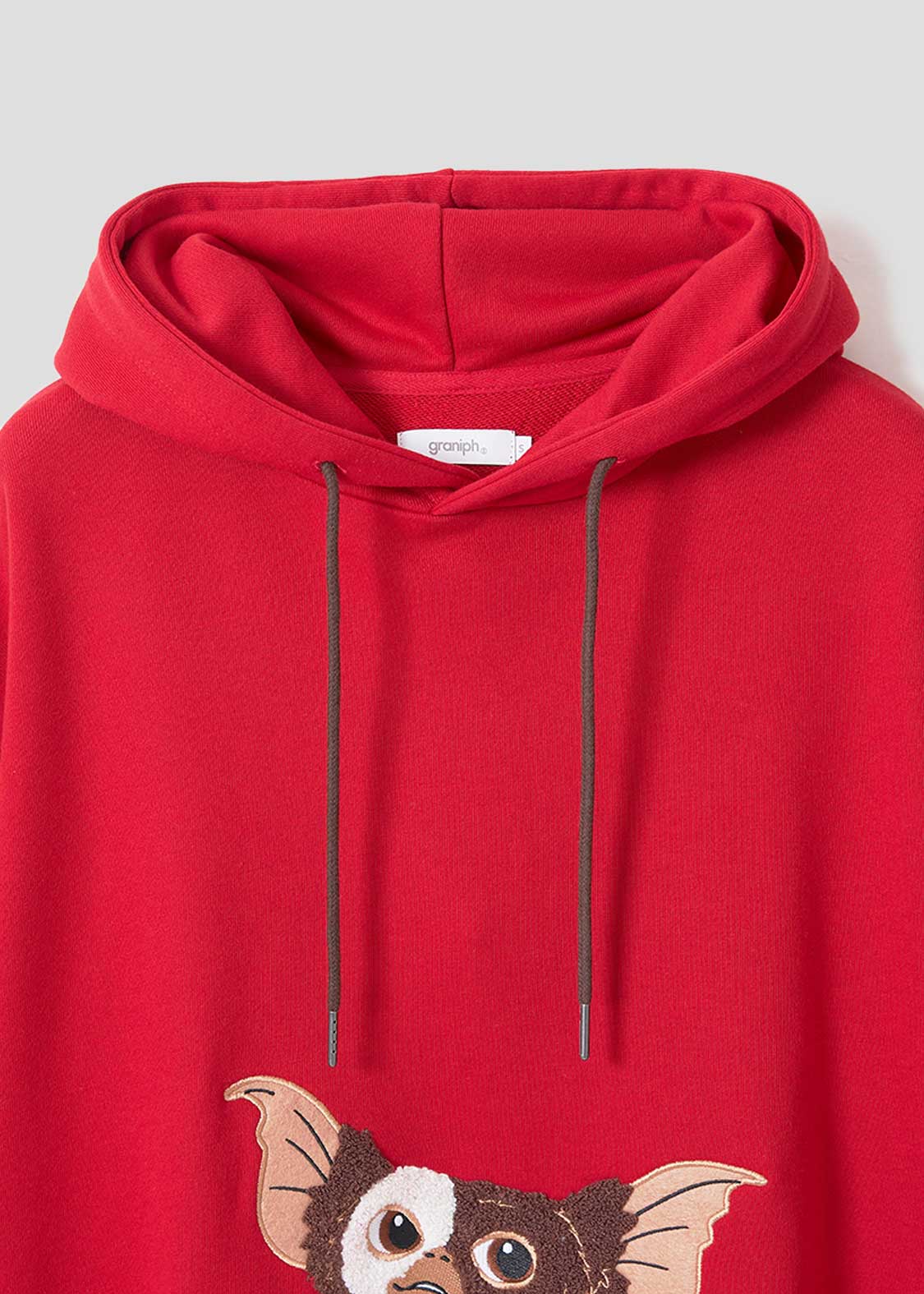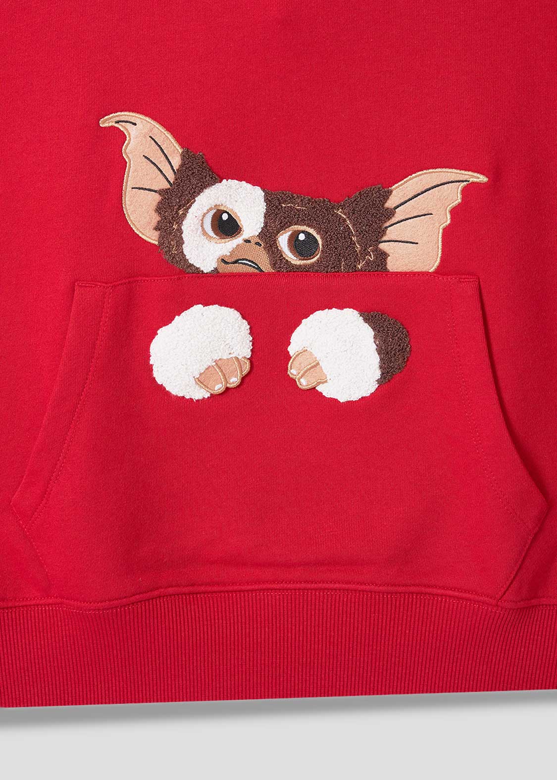 まるでポケットの中にギズモが入っているような遊び心あふれるデザイン。相良刺繍とフェルトで立体的に表現し、指の部分は固定されていないためパタパタと動かすことができます。バックには「GREMLINS」のロゴの上で気持ちよさそうに眠るギズモをプリントしました。