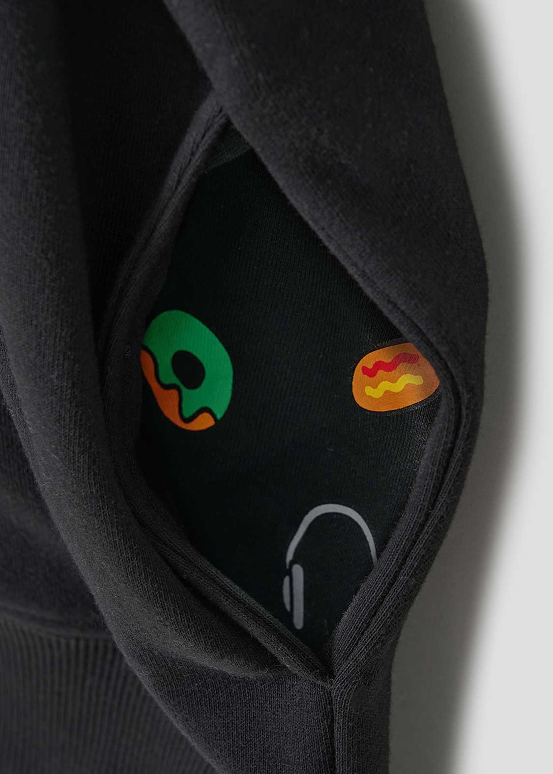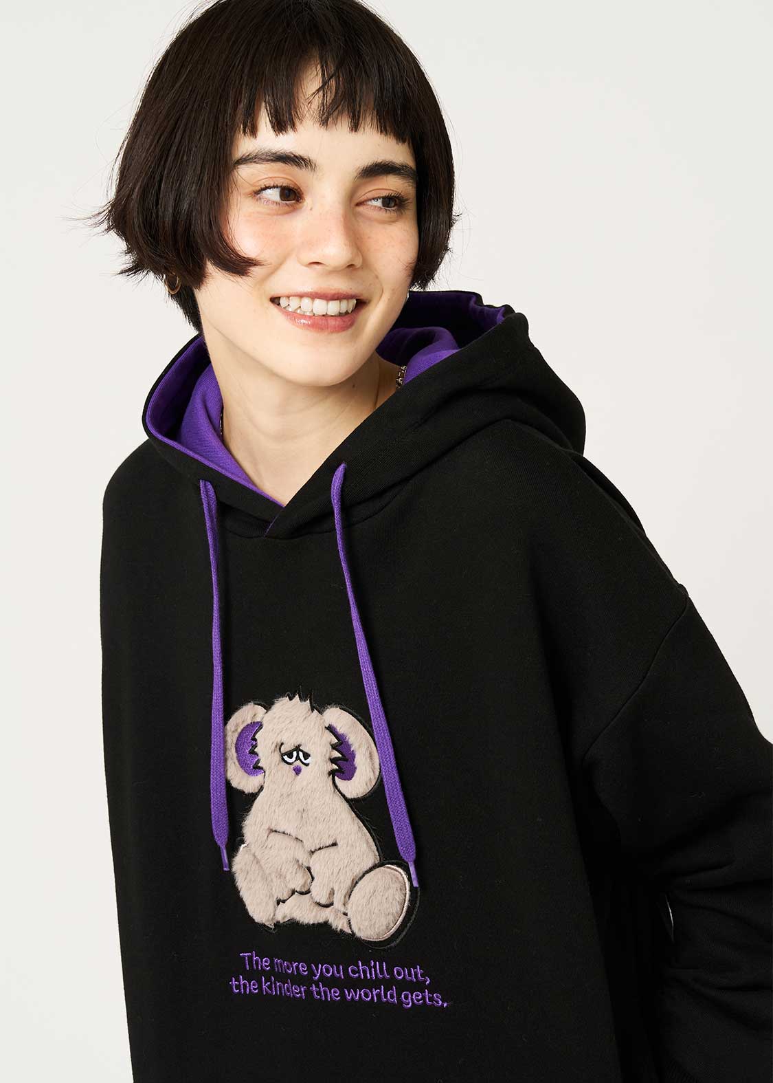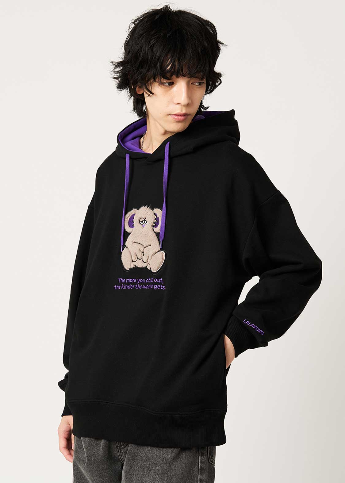 ・刺繍に合わせた配色のフード裏、フード紐がポイントです。