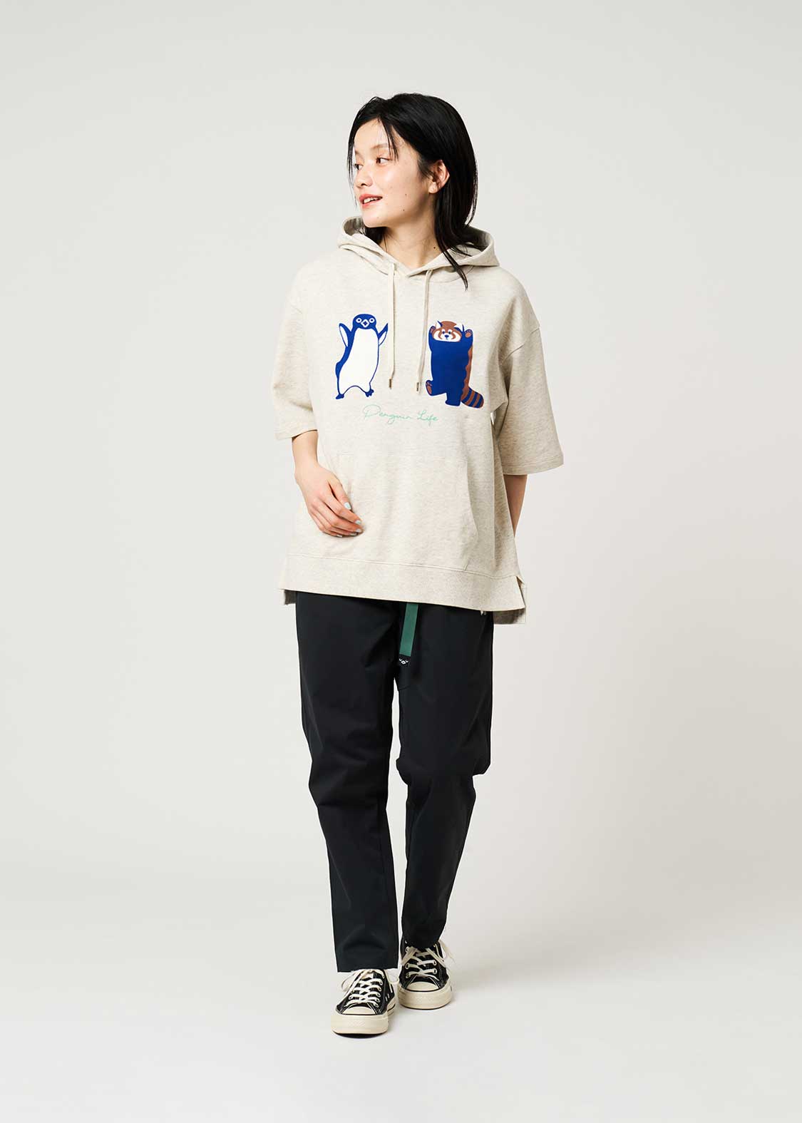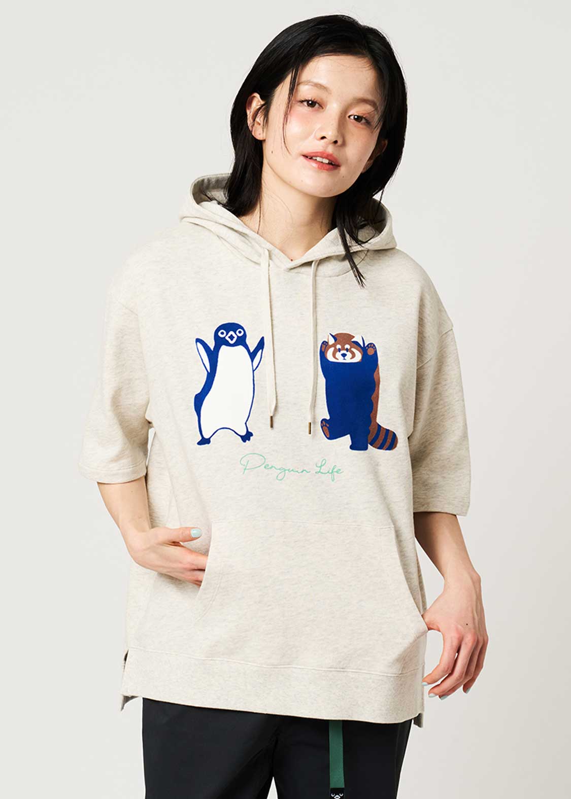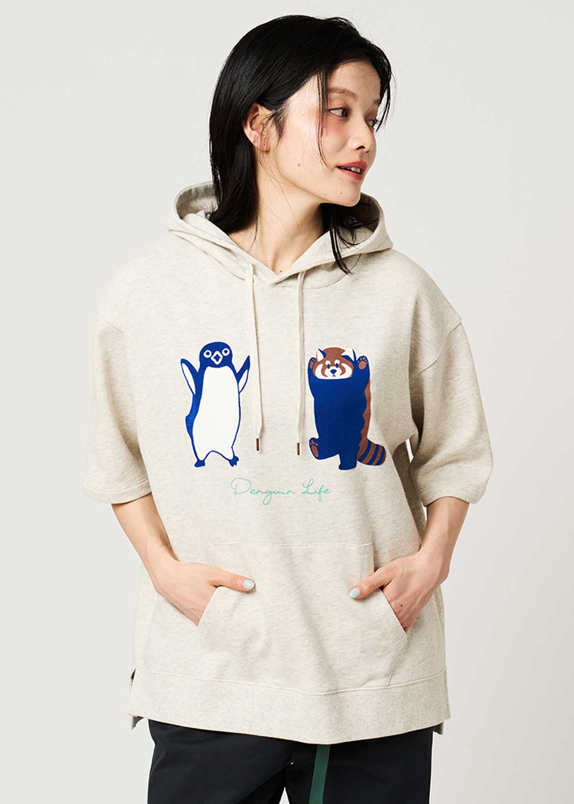 ・風合いの良い薄手のミニ裏毛を使用した、大きめシルエットの5分袖パーカーです。