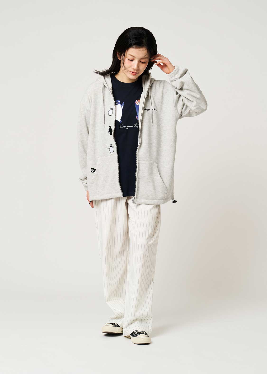 ・風合いの良い裏毛を使用した、ゆったりしたシルエットのジップパーカー。