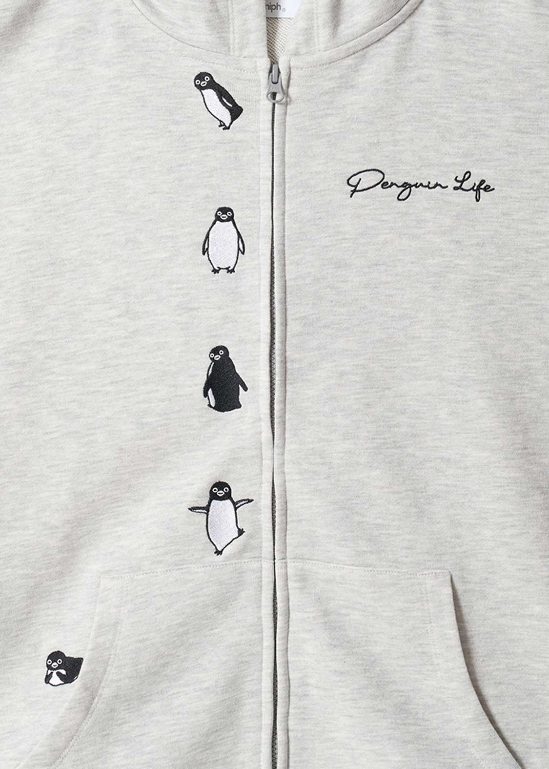 おじぎしたり、笑ったり、丸まったり、自由気ままなペンギンの様々な姿を刺繍したデザイン。お気に入りのペンギンを見つけてみてね。