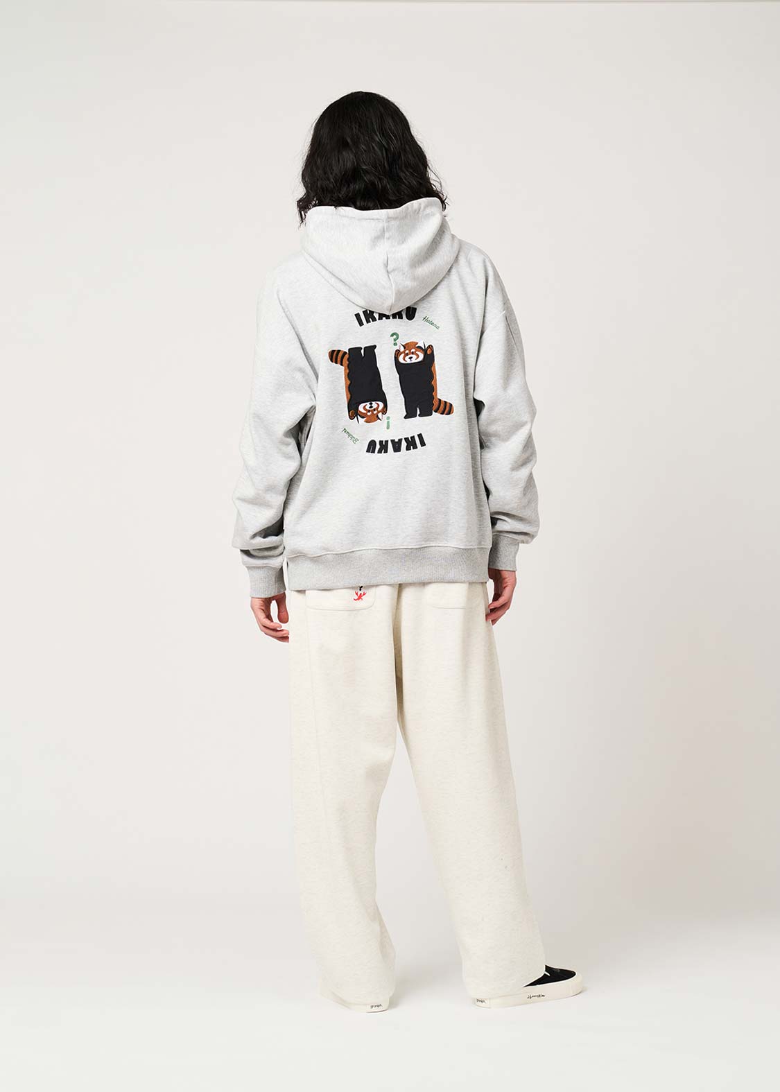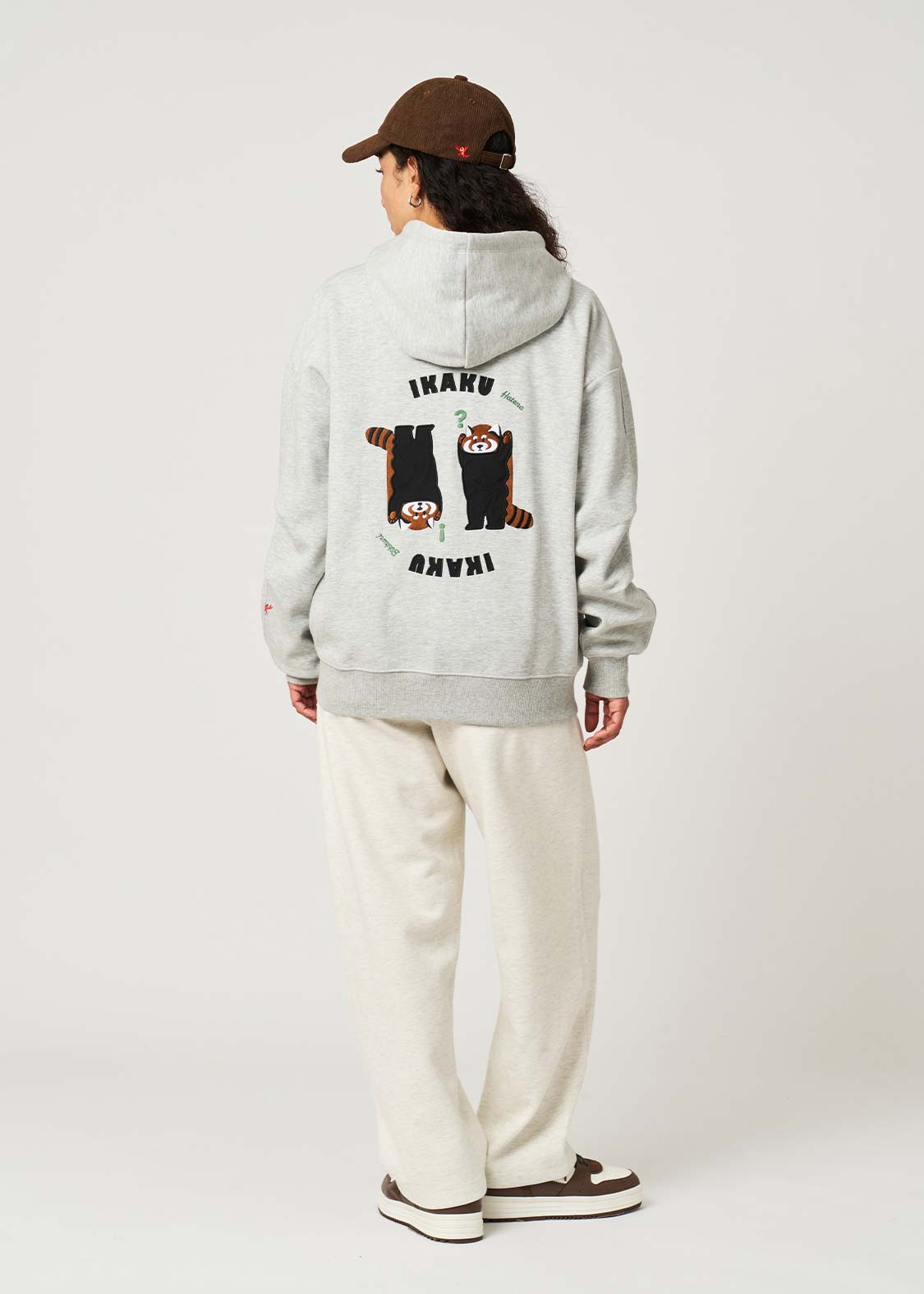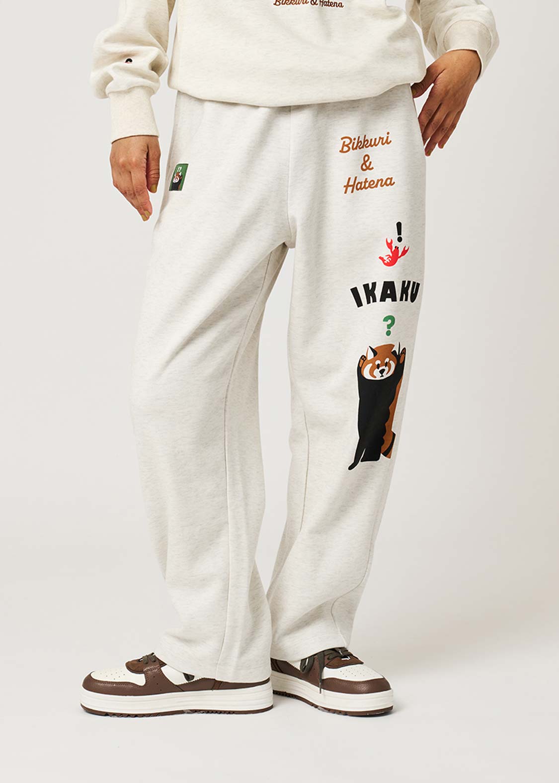 レッサーパンダの「?」と「!」の表情を、遊び心たっぷりにデザイン。ちょっとしたリアクションを切り取った、!?マークがアクセントのグラフィックです。