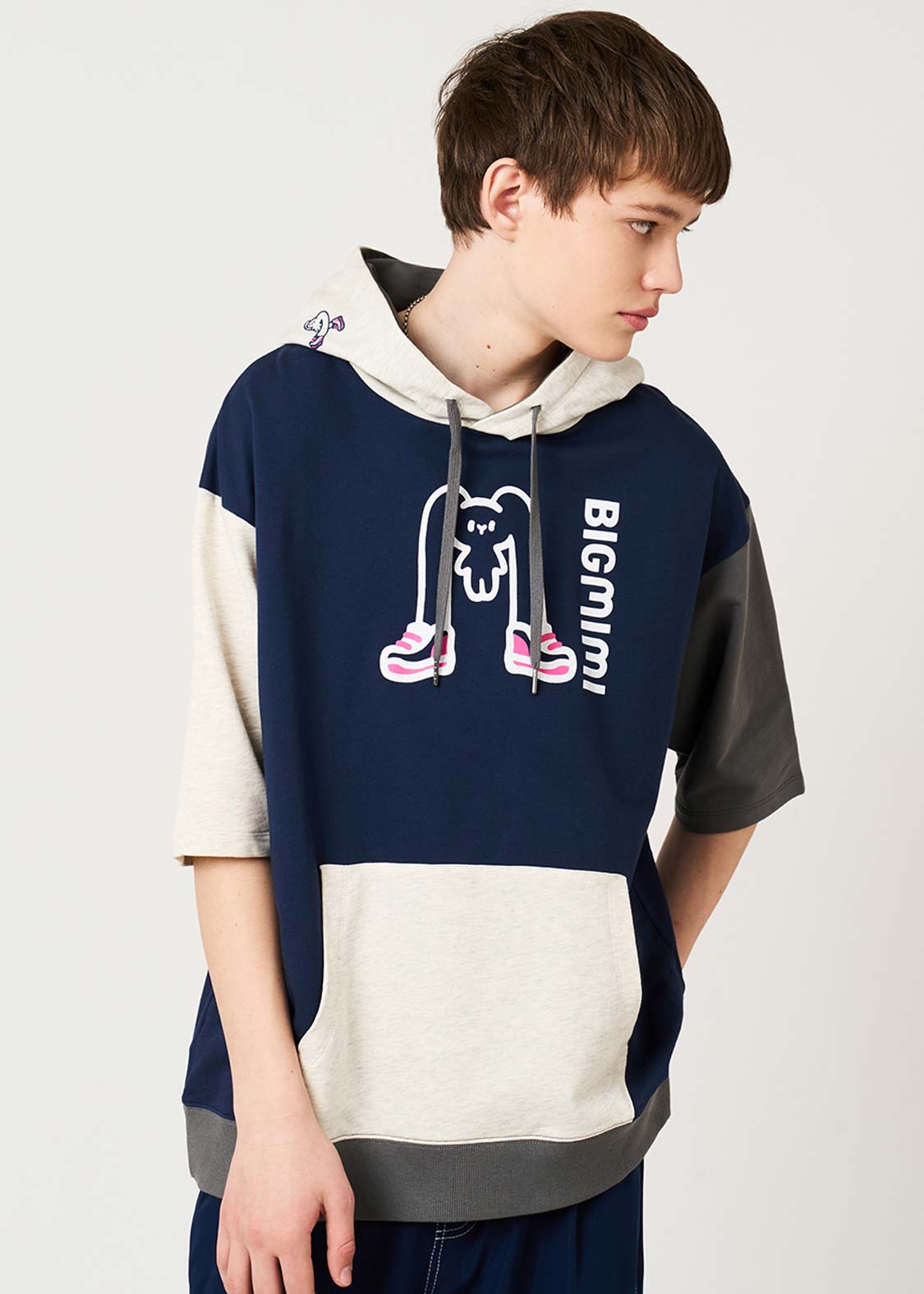 ・本体にコットン100%のミニ裏毛素材を使用した、やわらかな肌触りの5分袖パーカーです。