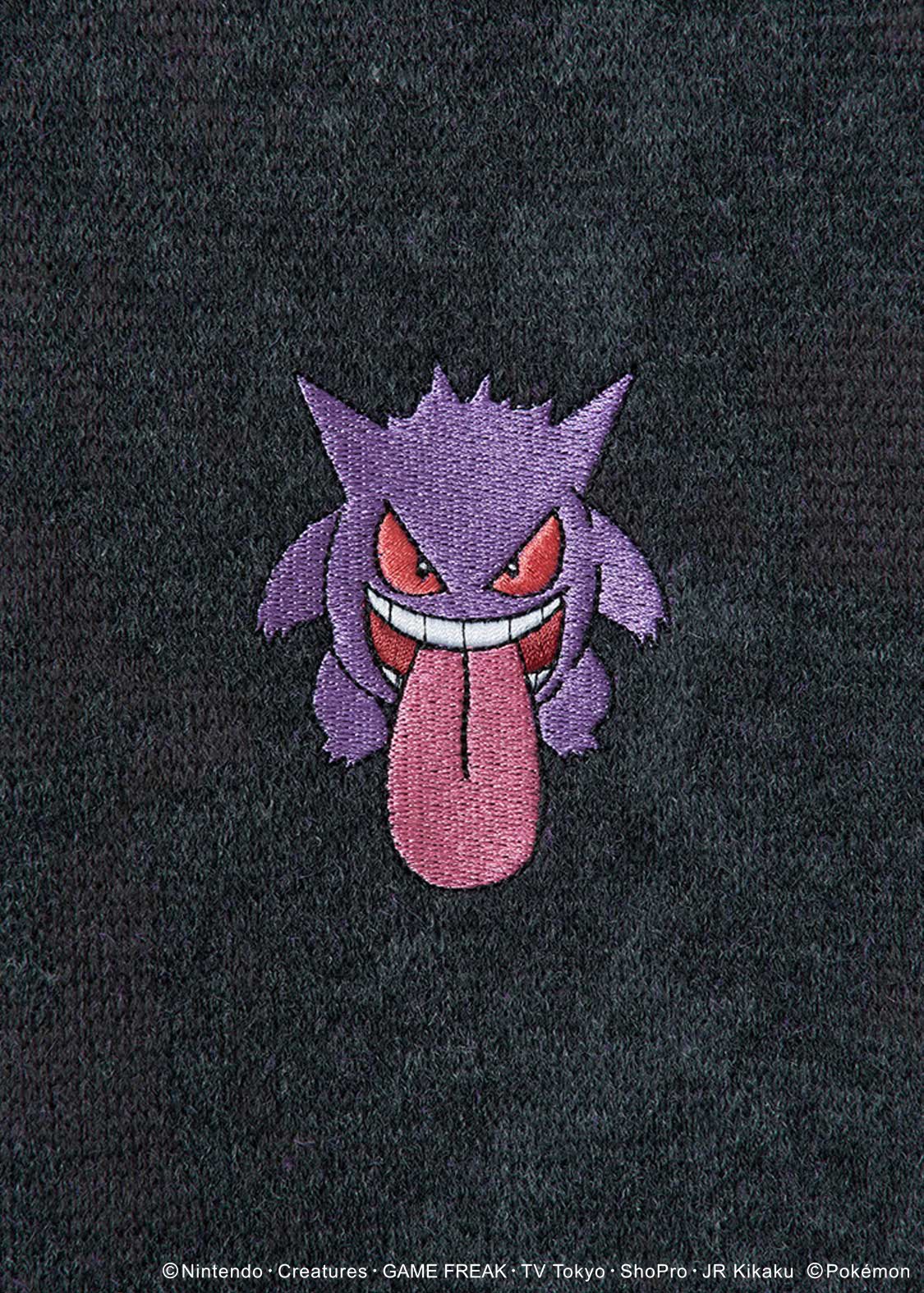 舌を出したゲンガーを胸元に刺繍したデザイン。左脇に挟み込まれた図鑑番号のNo.0094の織りネームがポイントです。