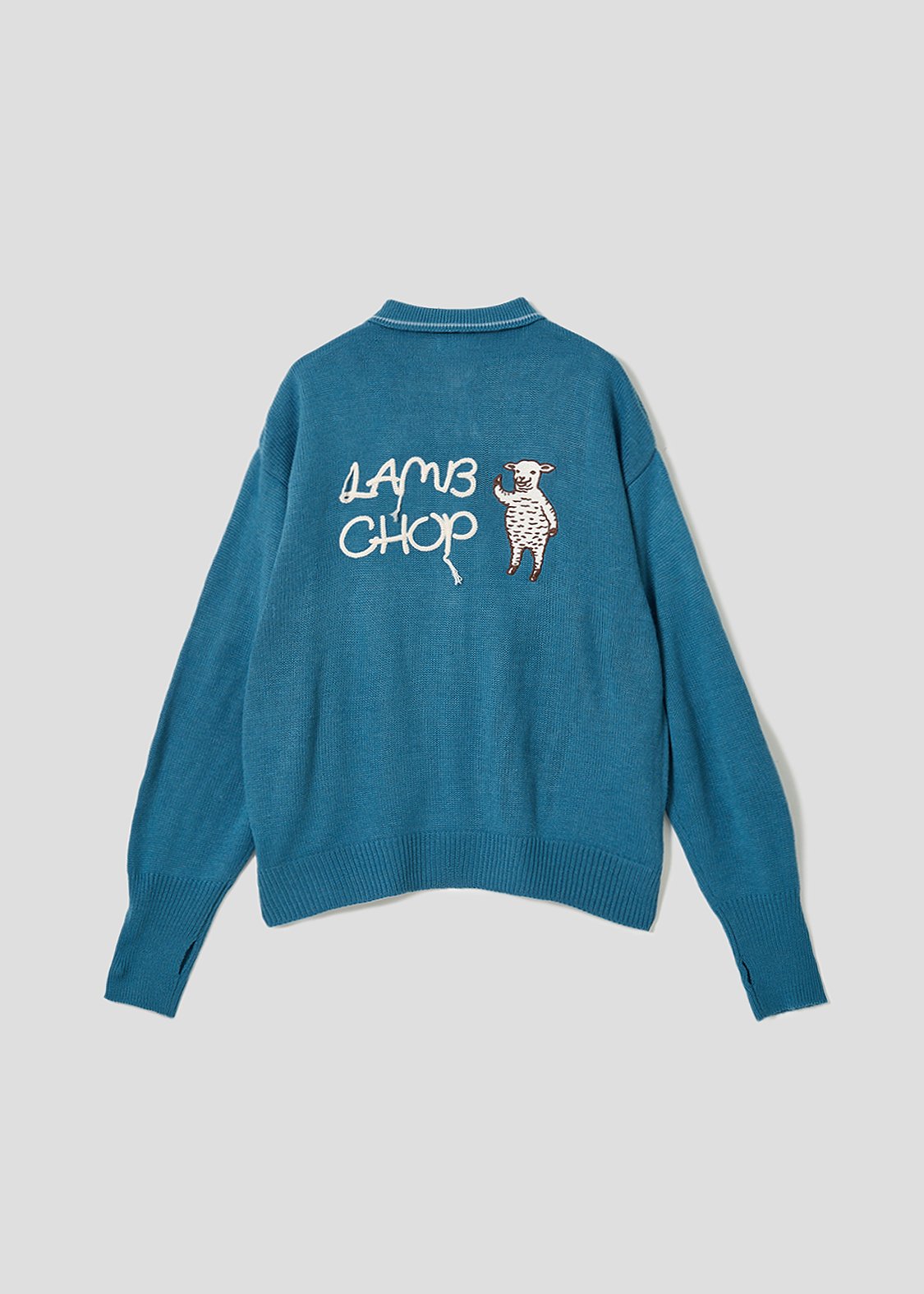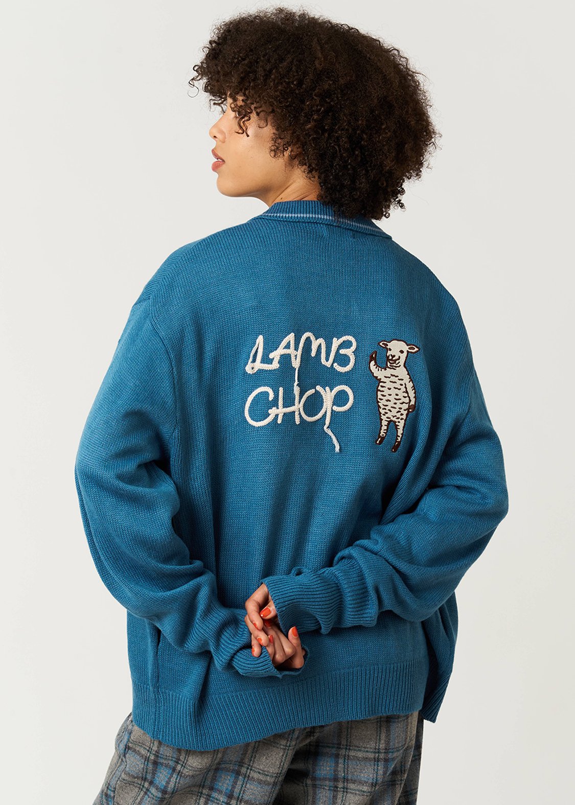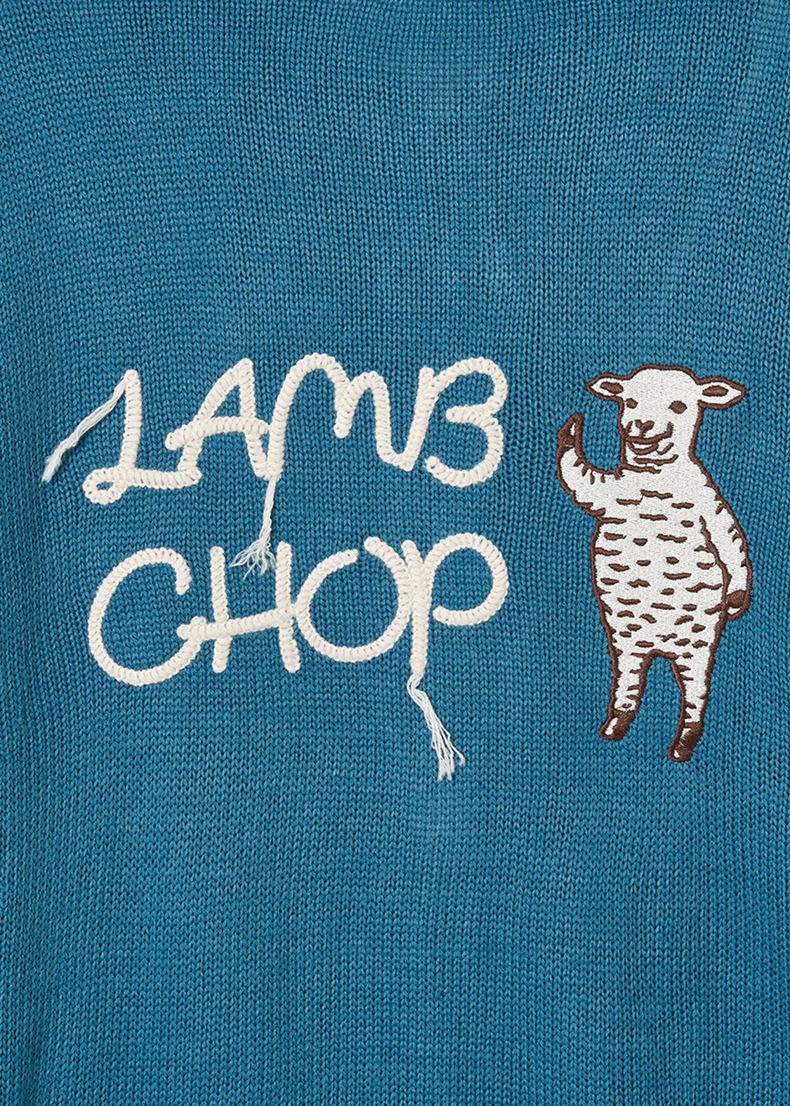 ・太番手でざっくり編んだボディに毛糸で刺繍したような背中の文字がポイント。