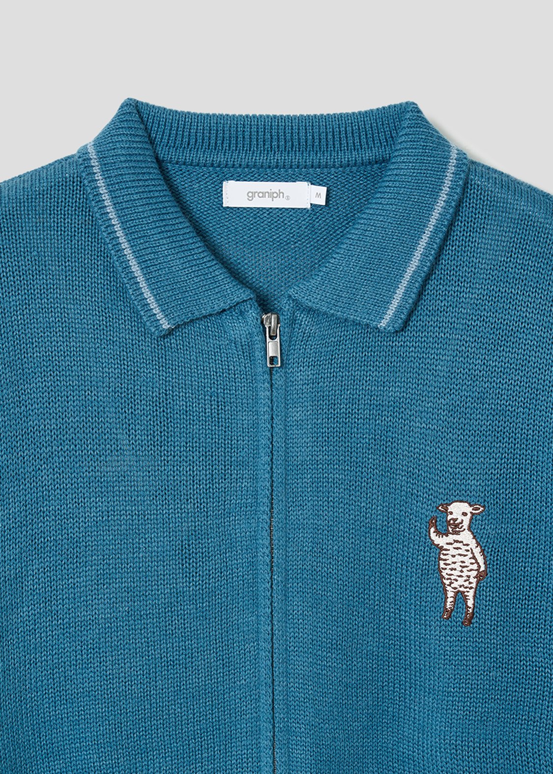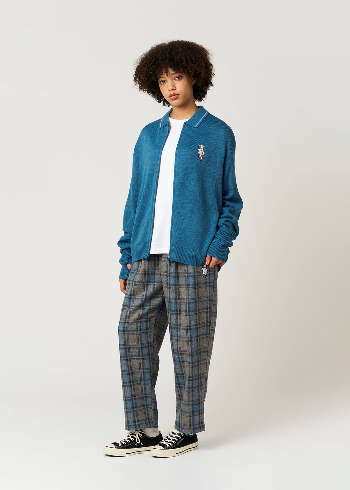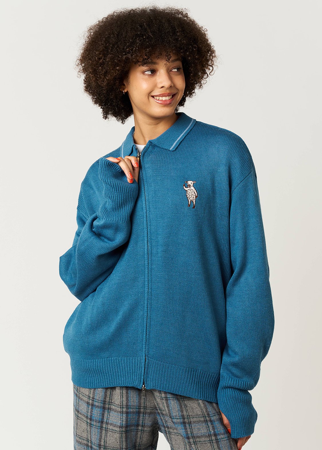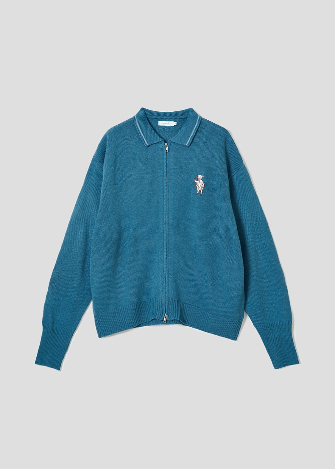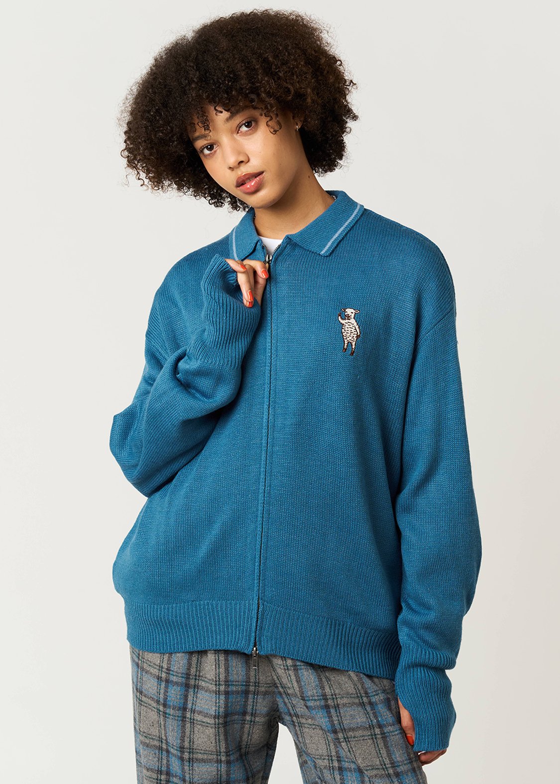 ・ニットのジップアップカーディガン。